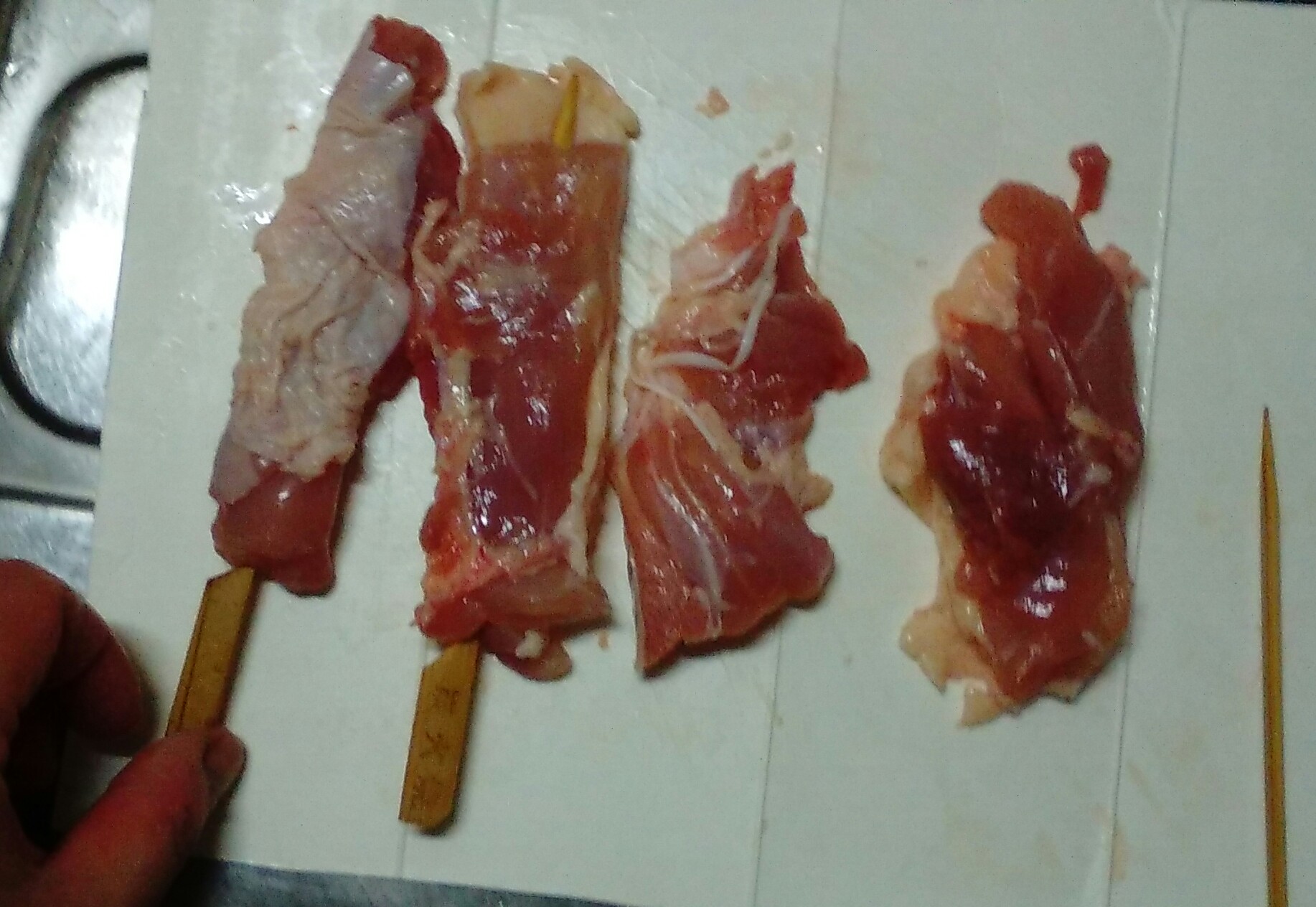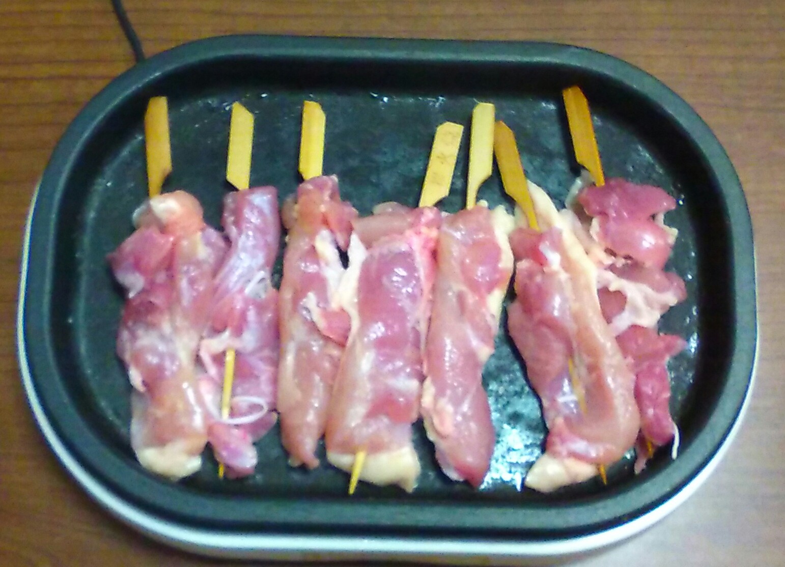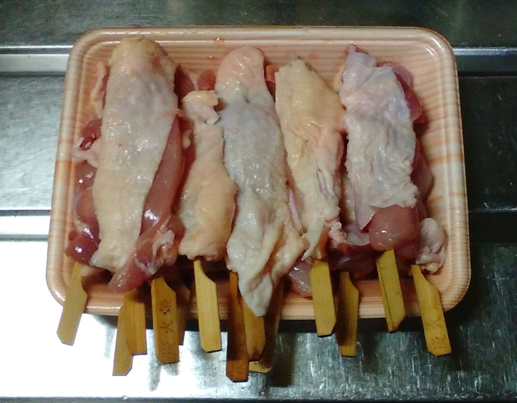 鶏を一口サイズに切って串に刺すのって、かなりの重労働。