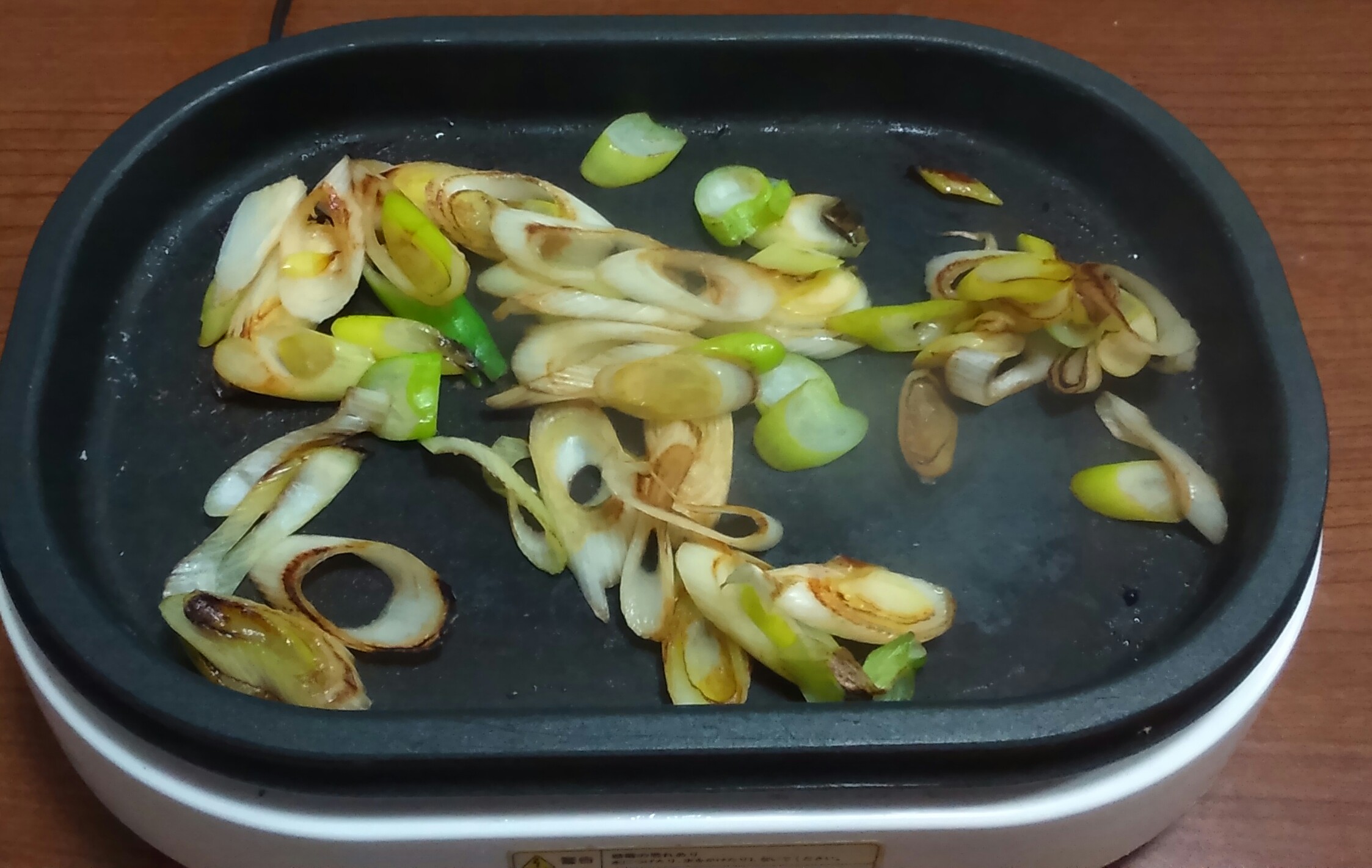 ②ホットプレートで焼き、塩や好みのタレでいただきます。