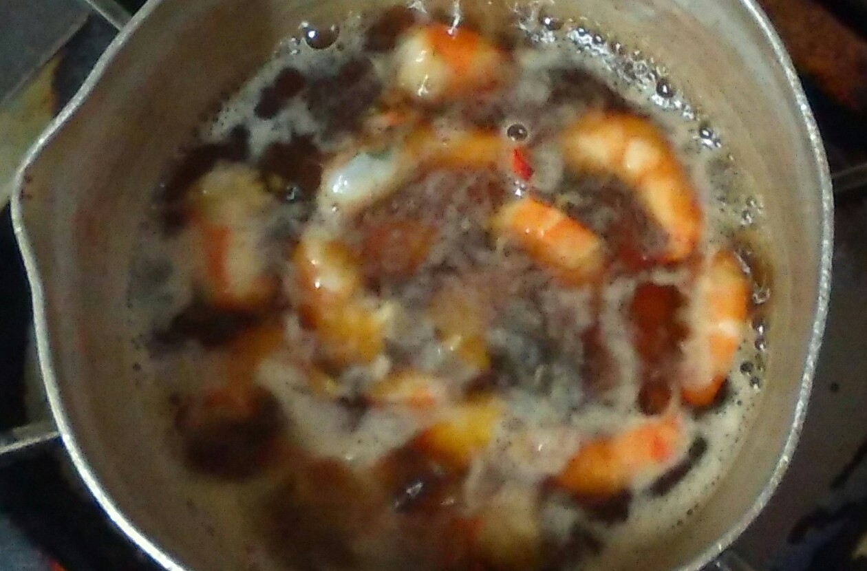海老を入れて煮るのに1分。