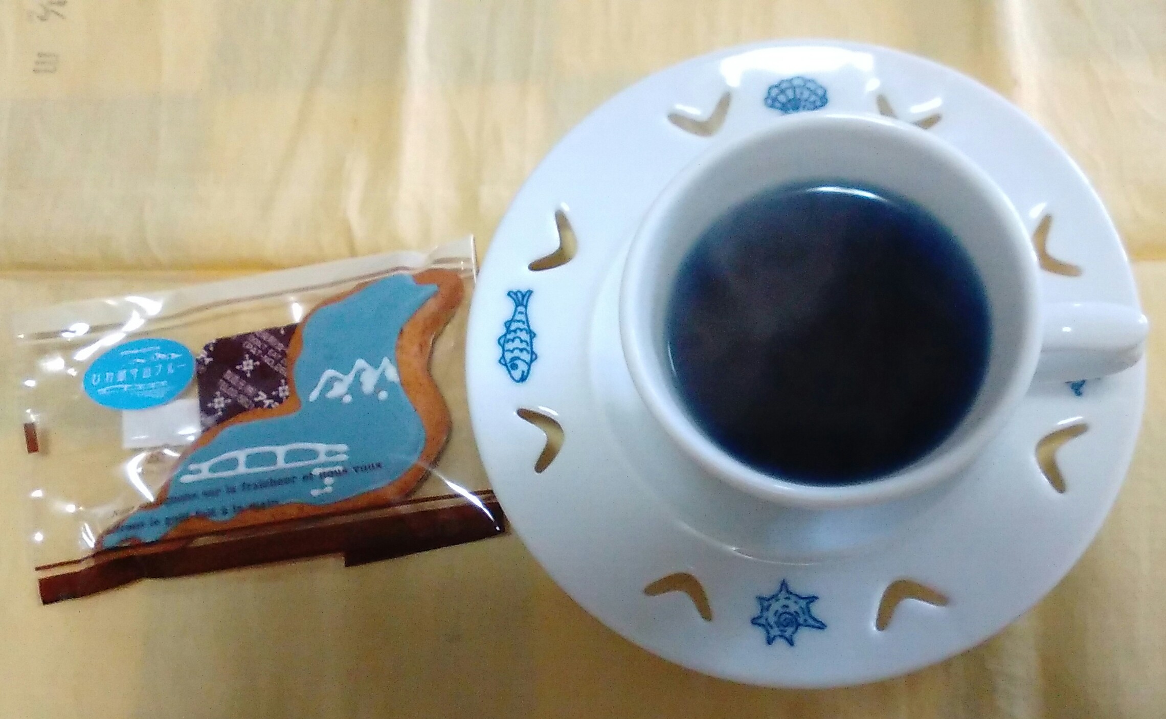 すっぱいハーブティと共に、『びわ湖ブルークッキー』を。