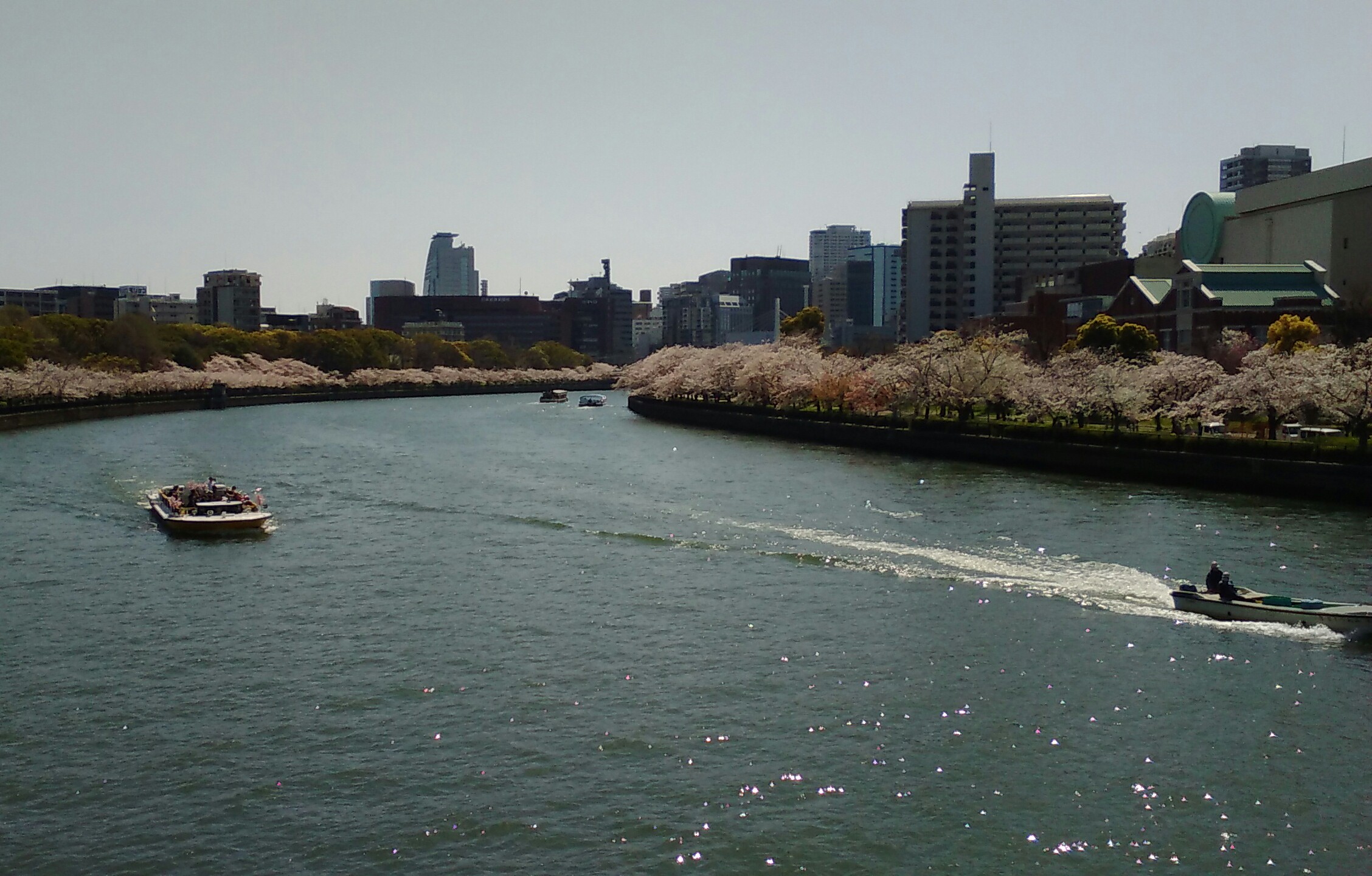 陽気につられ、桜をながめながら自転車で大阪の街を流しました。