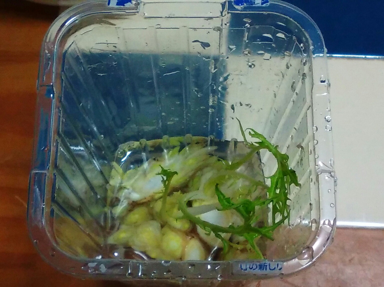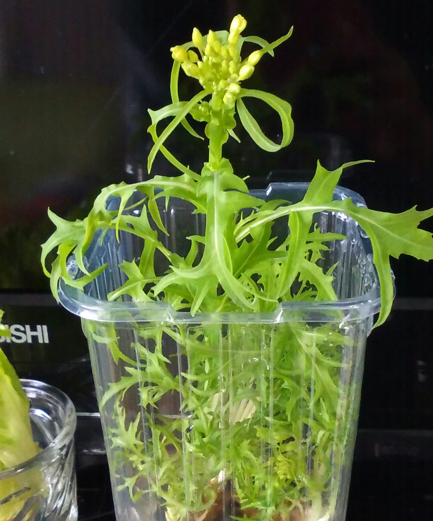 水菜の大株の根に残った小さい葉。