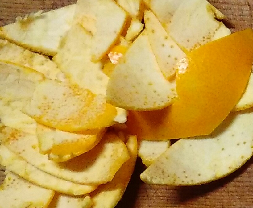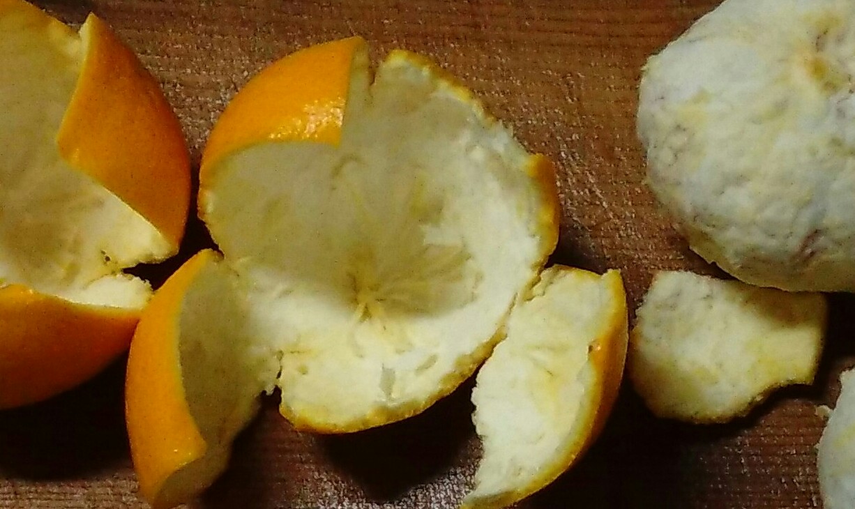 白い部分もとっておく(『Step.2のペクチン液を作る』で使います)。
