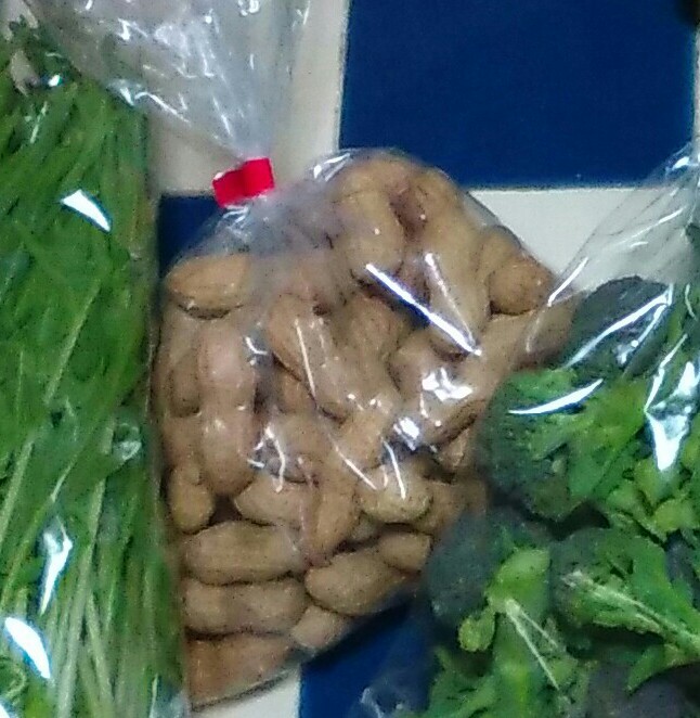 左から水菜、ピーナッツ、ブロッコリー、大根、菜の花、小松菜。