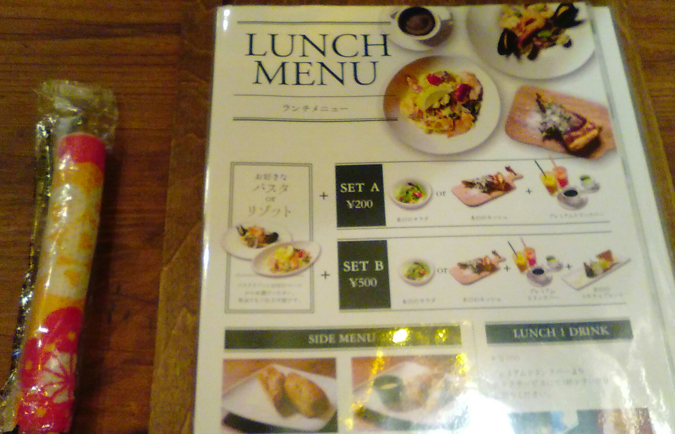 ランチセットはAセットとBセットがあり、パスタorリゾットを選択。