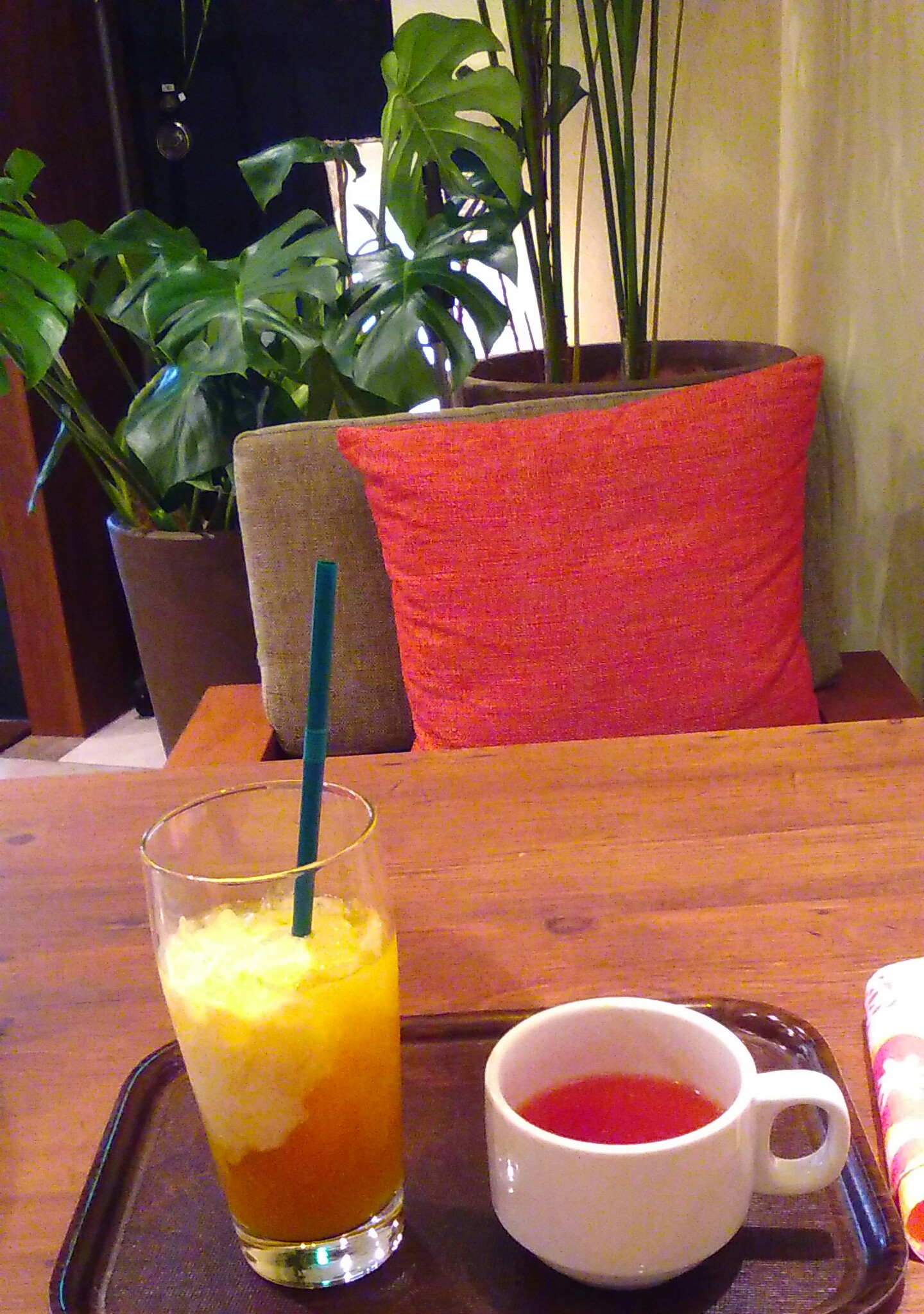 鉢植えのモンステラなどなど、南国リゾートでゆったり過ごしている心地よさを感じながら、出入り口付近の席に座りメニューを広げました。