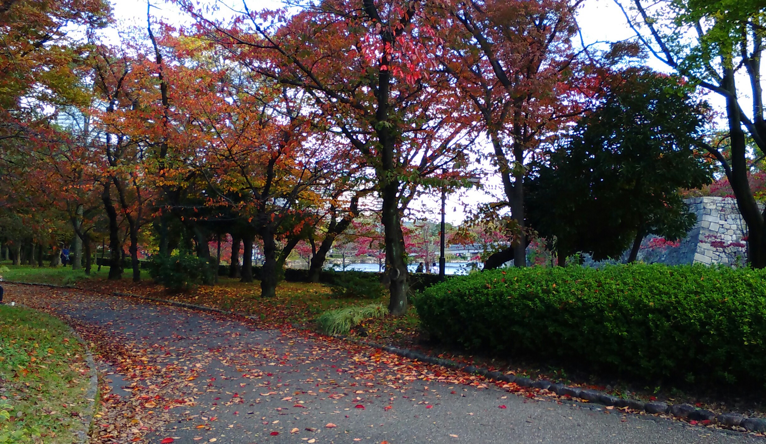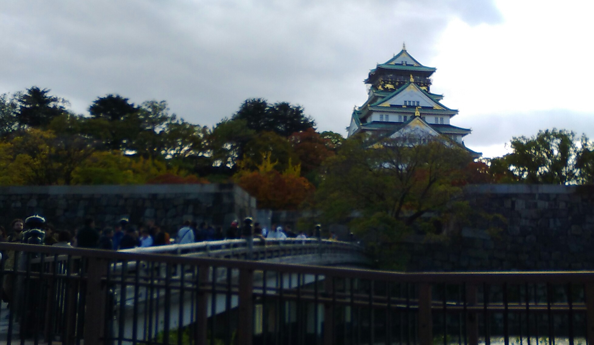 紅葉の大阪城に人だかり