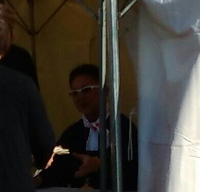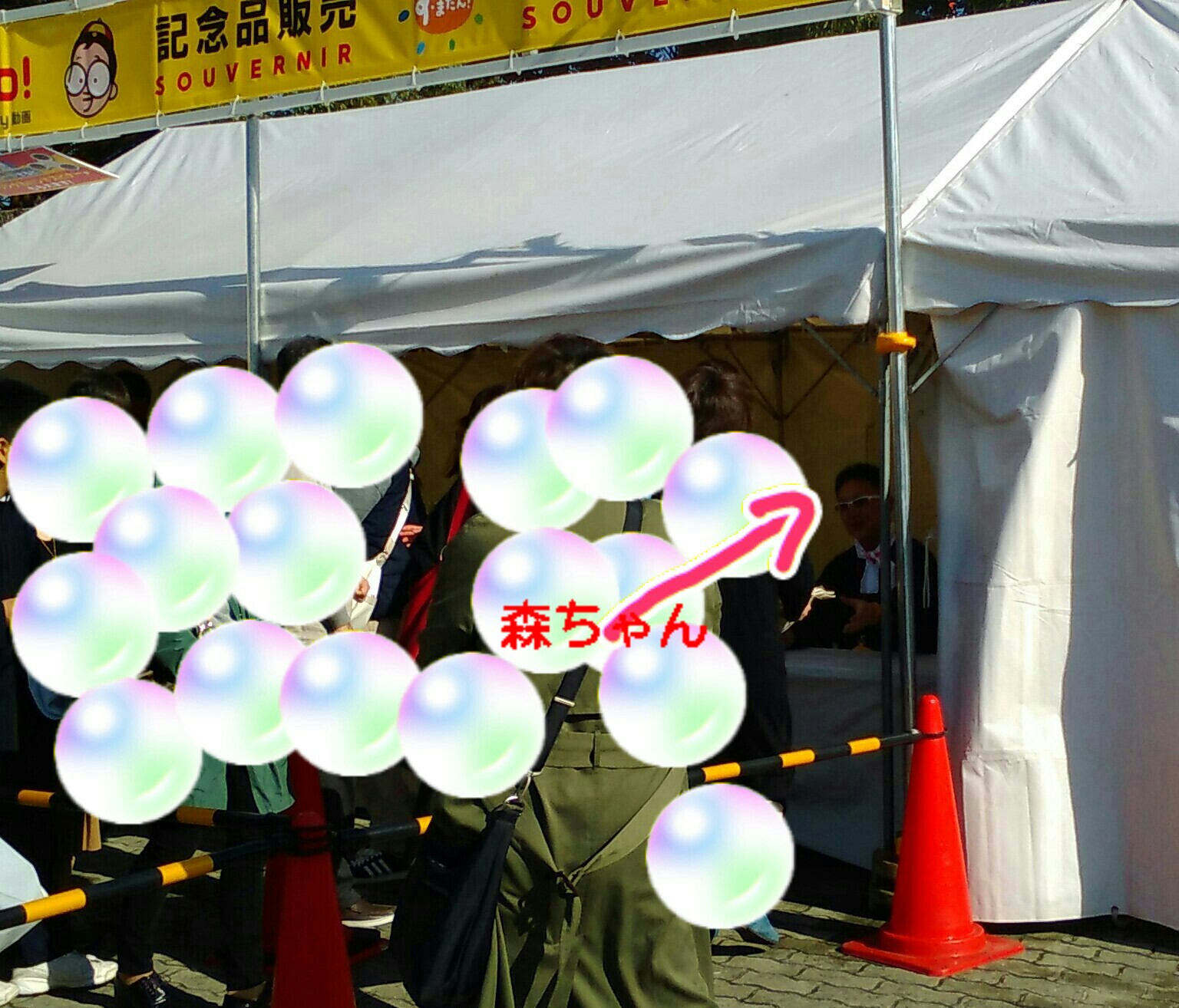 どのへんやろうと歩き進めると、やがて白いテントに人だかりが。