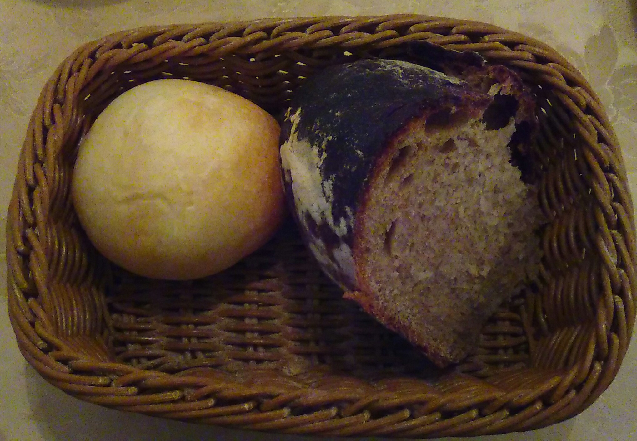 黒く丸いパンをカットしたものは、酸味がありもっちり。