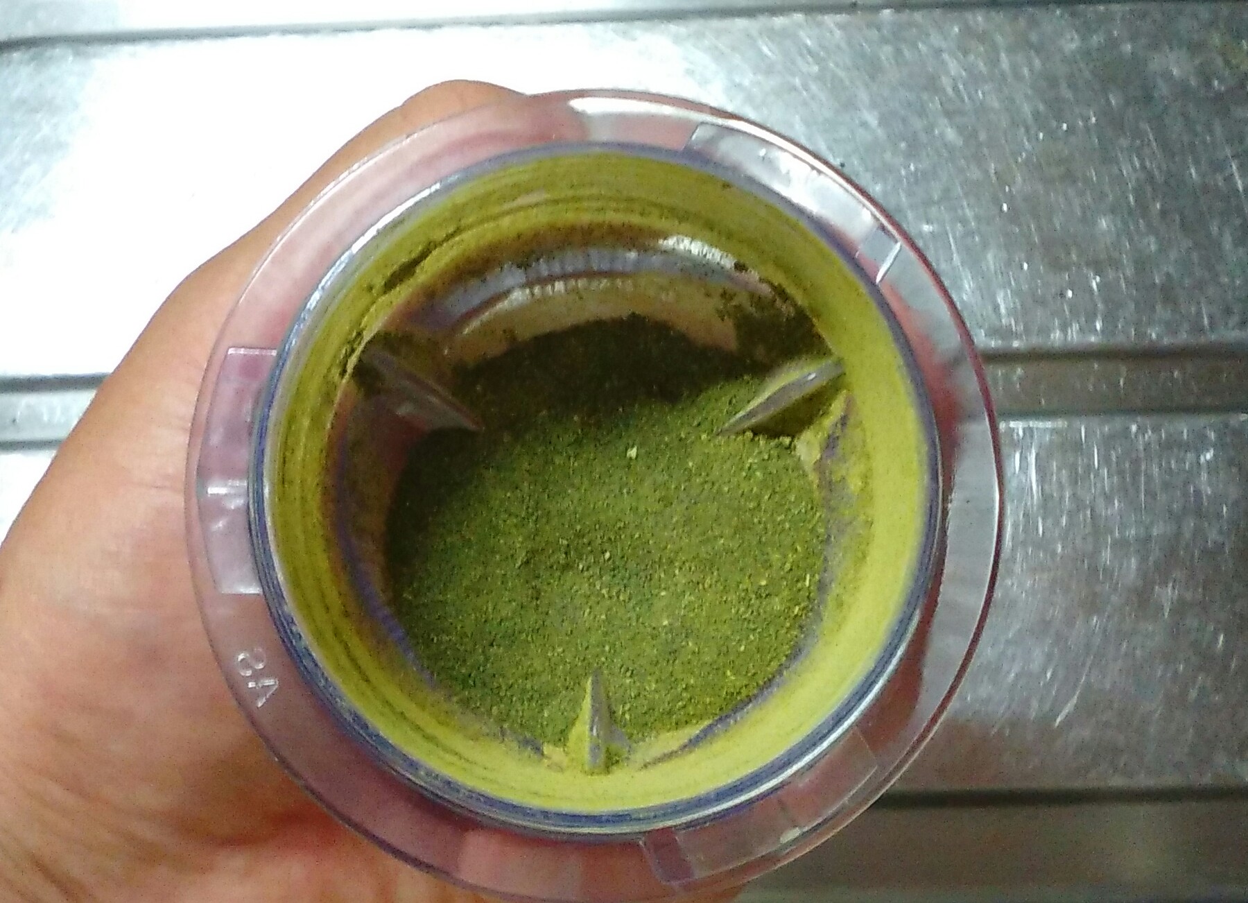 市販の抹茶を買わず、自分で茶葉を粉にして自家製抹茶を作っている料理研究家もいるようだし、試しにミルでひいてみることに。