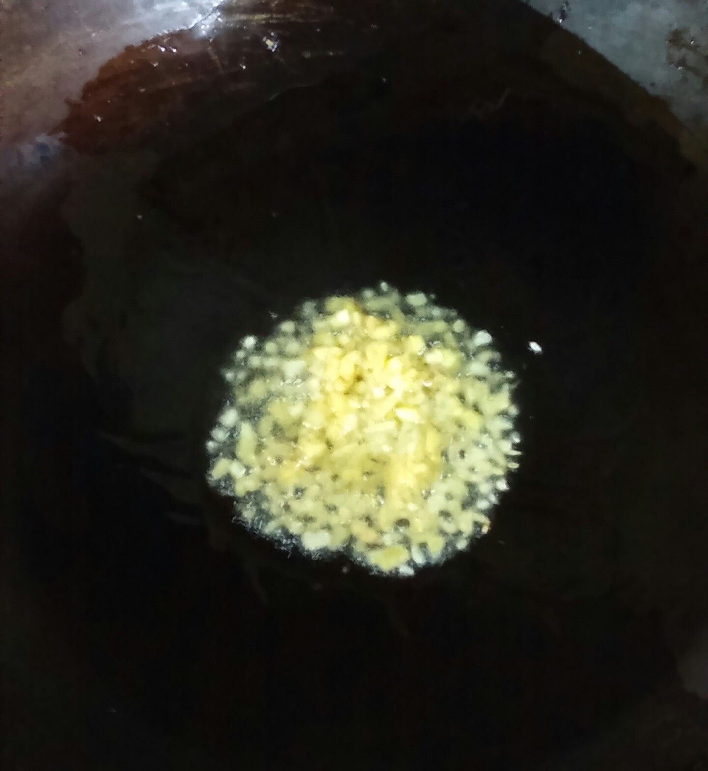 ①フライパンに油を敷き、ニンニクと生姜のみじん切りを入れ点火。