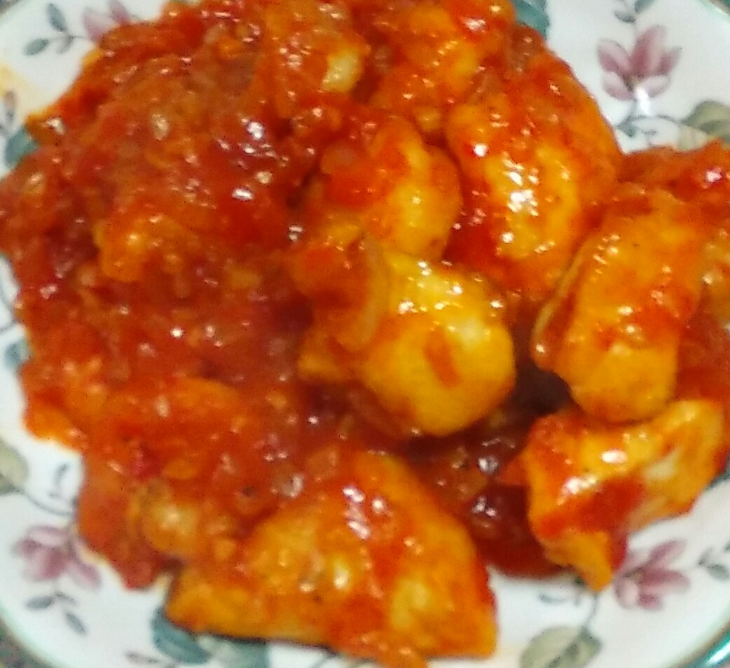 というわけで苦肉の策で考えたのが名付けて『エビ鶏チリ』。