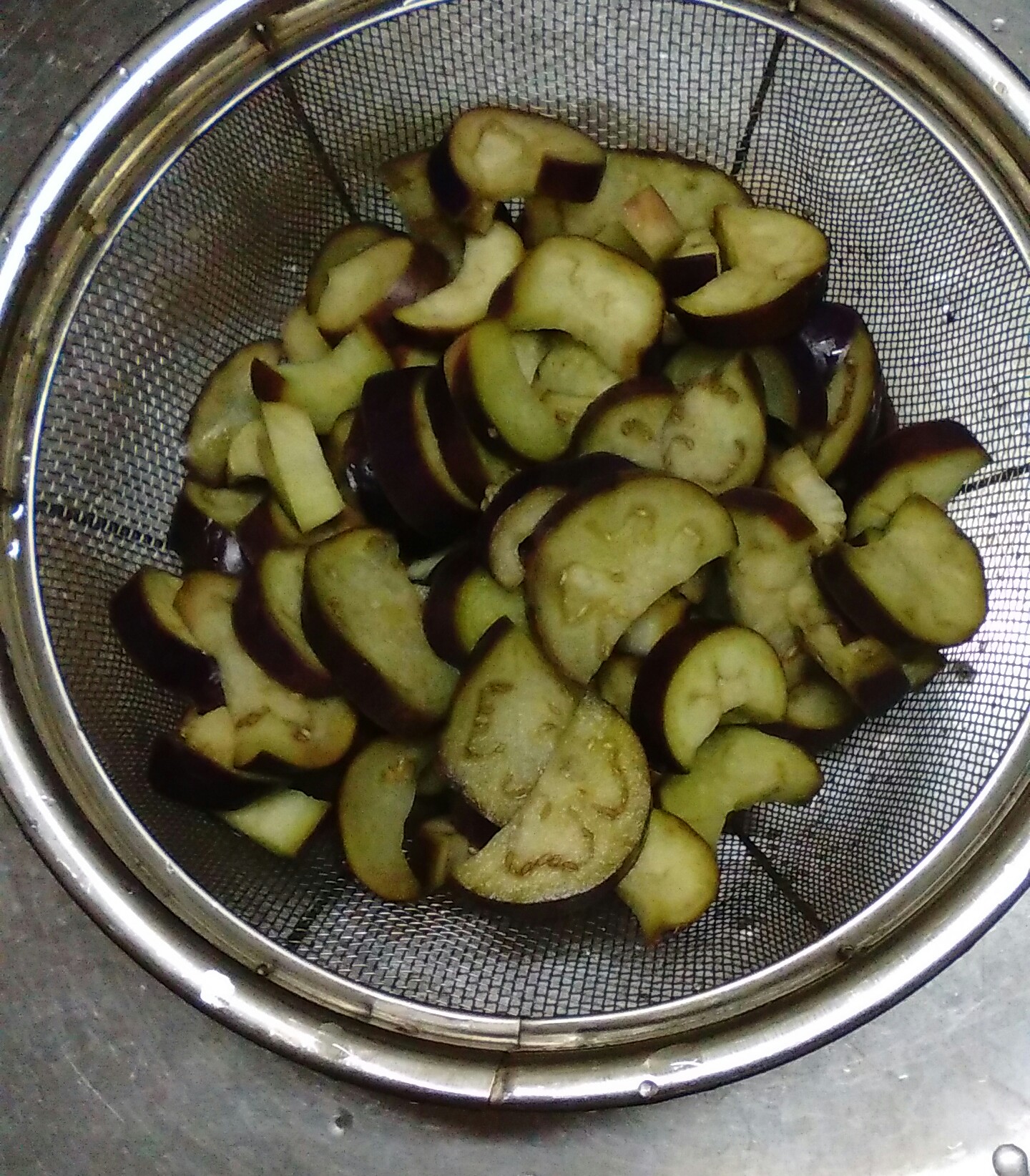 茄子が崩れないよう優しく水を切って下さい。