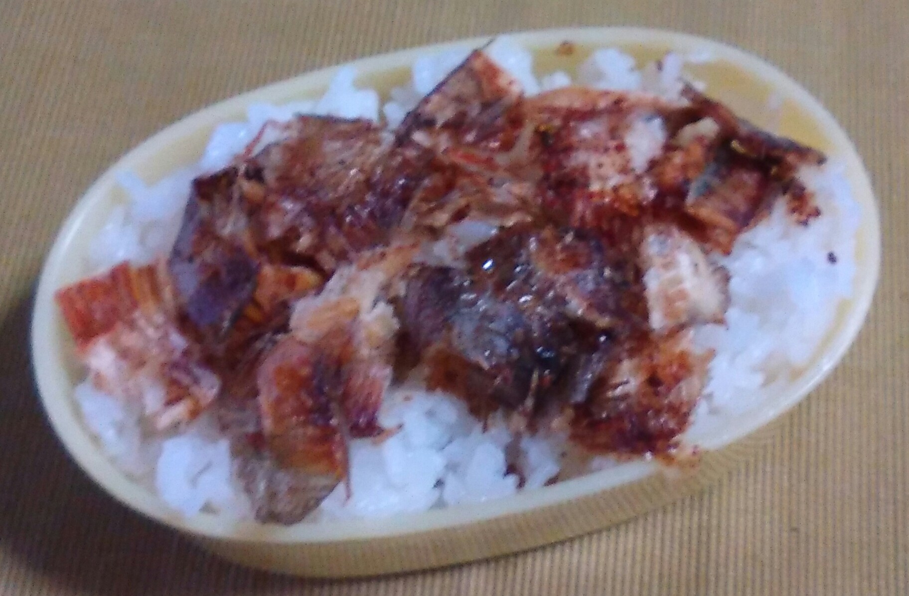 焼いてほぐしたがんぞうに醤油と七味をかけて、ご飯に乗せるんです。