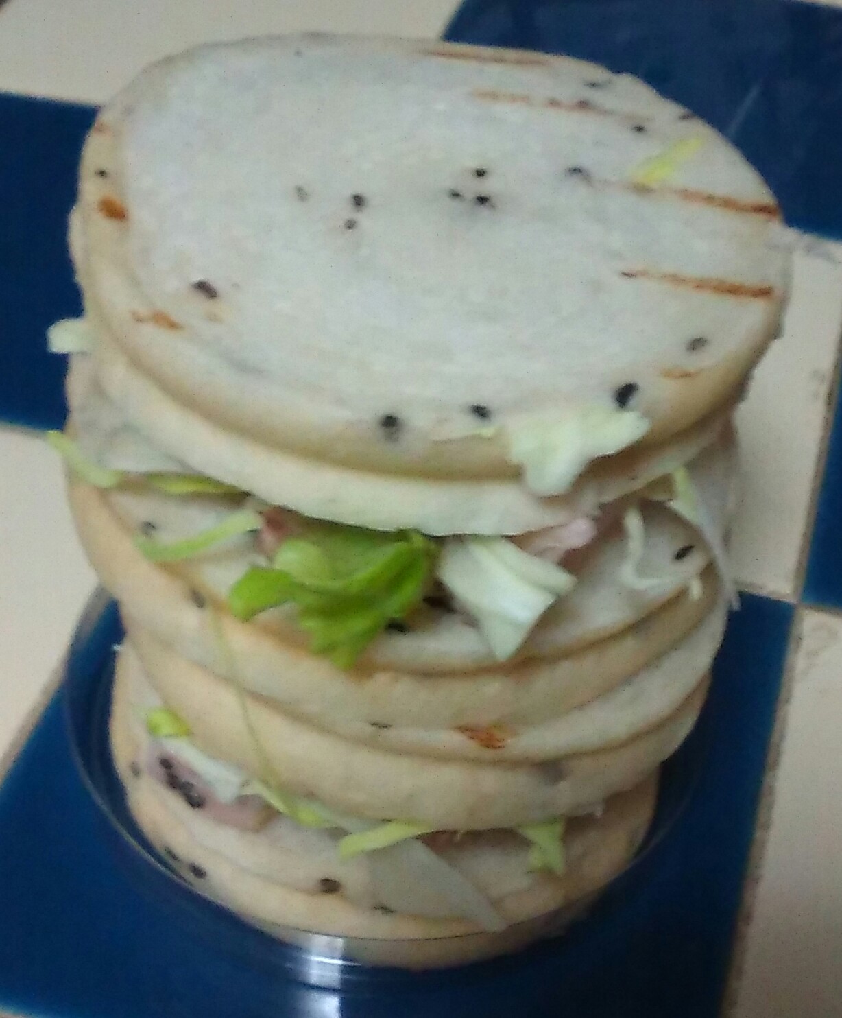 看板のうずまき印が印象的だったのでロール型のサンドウィッチとばかり思っていたら、丸いパンを重ねていたんですね。