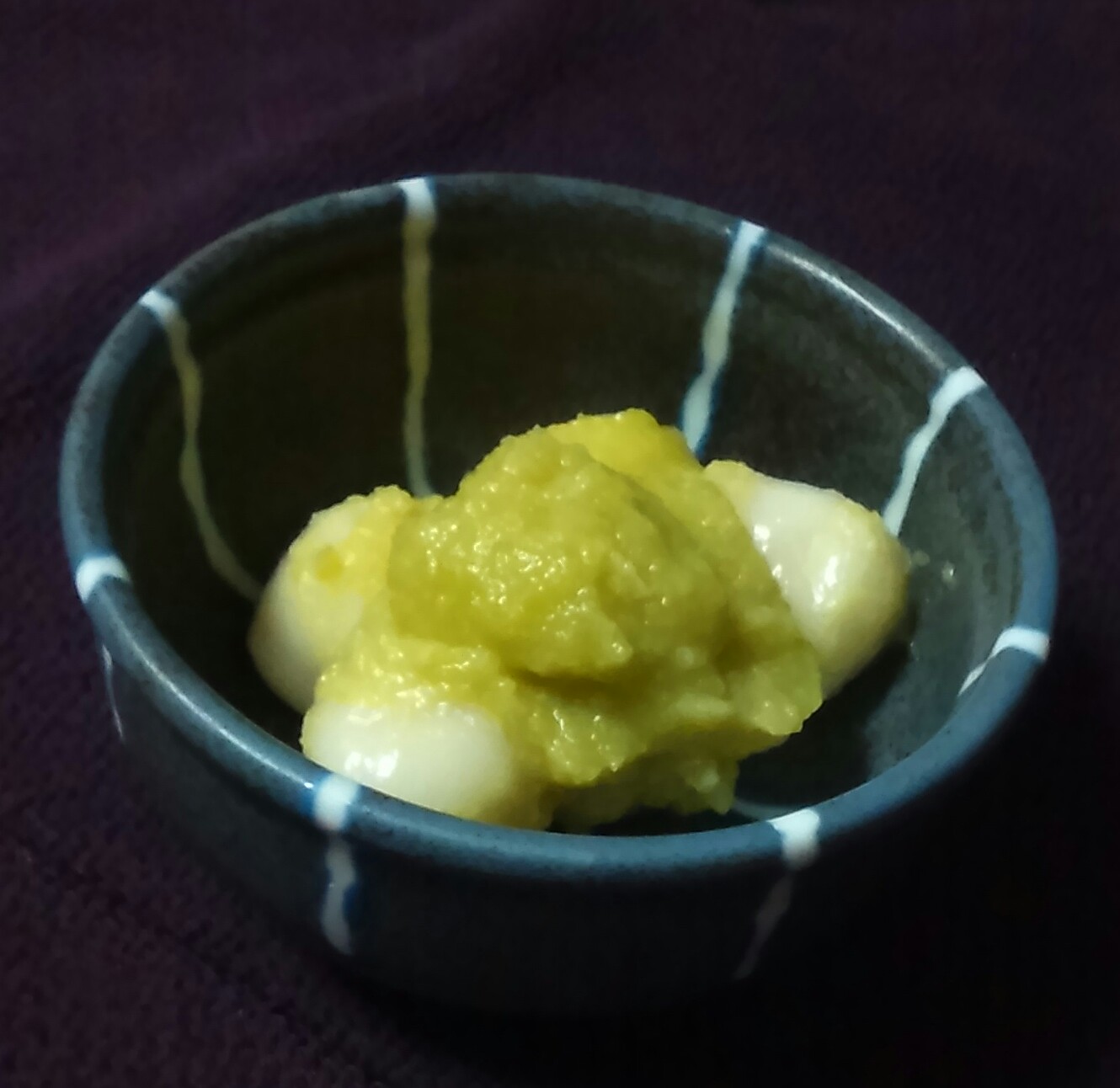 枝豆などで作った餡をお餅にからめて食べるお菓子で、ずんだ餅ににてるかな?