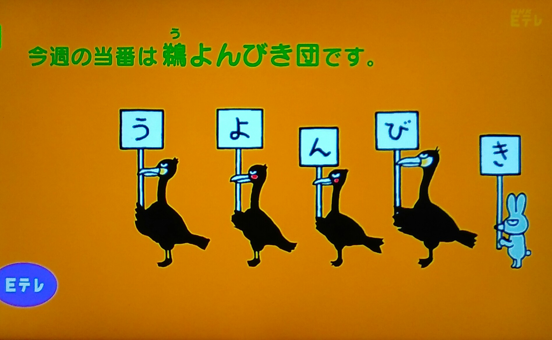 『鵜』は4匹だから、最後尾はウサギ(ネズミ?)さんが務めてるんですね!