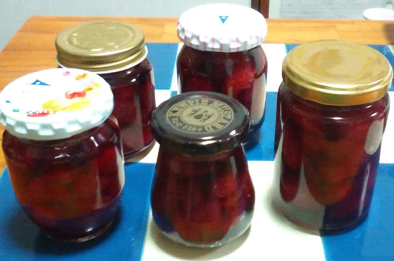 きんようびに苺ジャムを作り、びんようきに保存しました