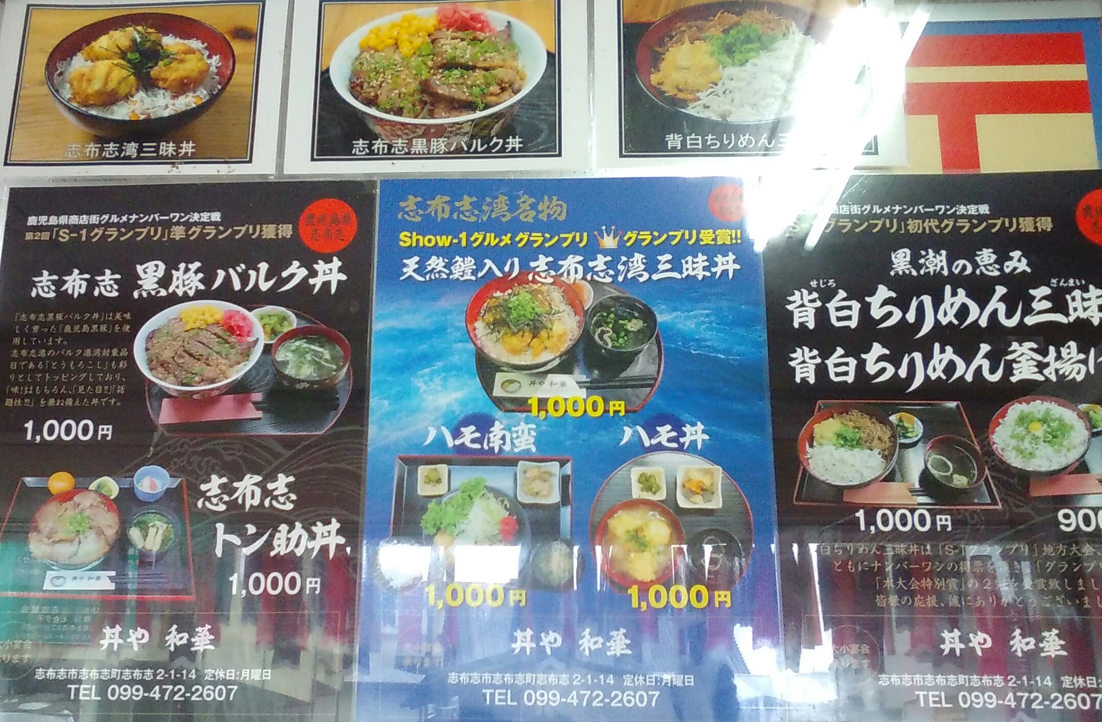 普通の食堂ですが「鹿児島県商店街グルメナンバーワン決定戦」で、グランプリをとったというメニューが勢揃い。