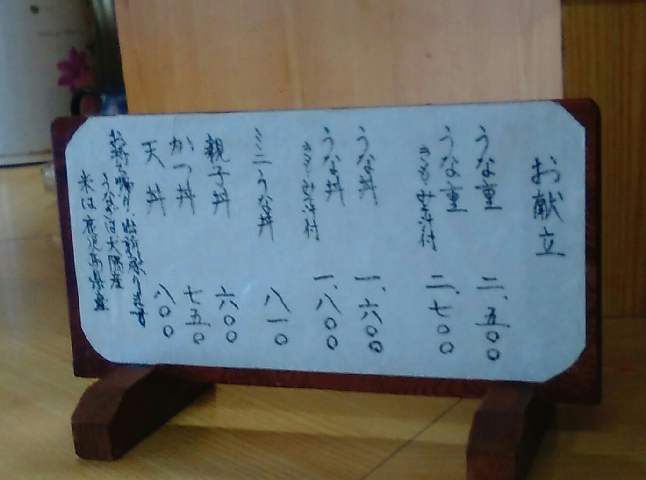 旅館の1階が鰻屋で、メニューはこれ。