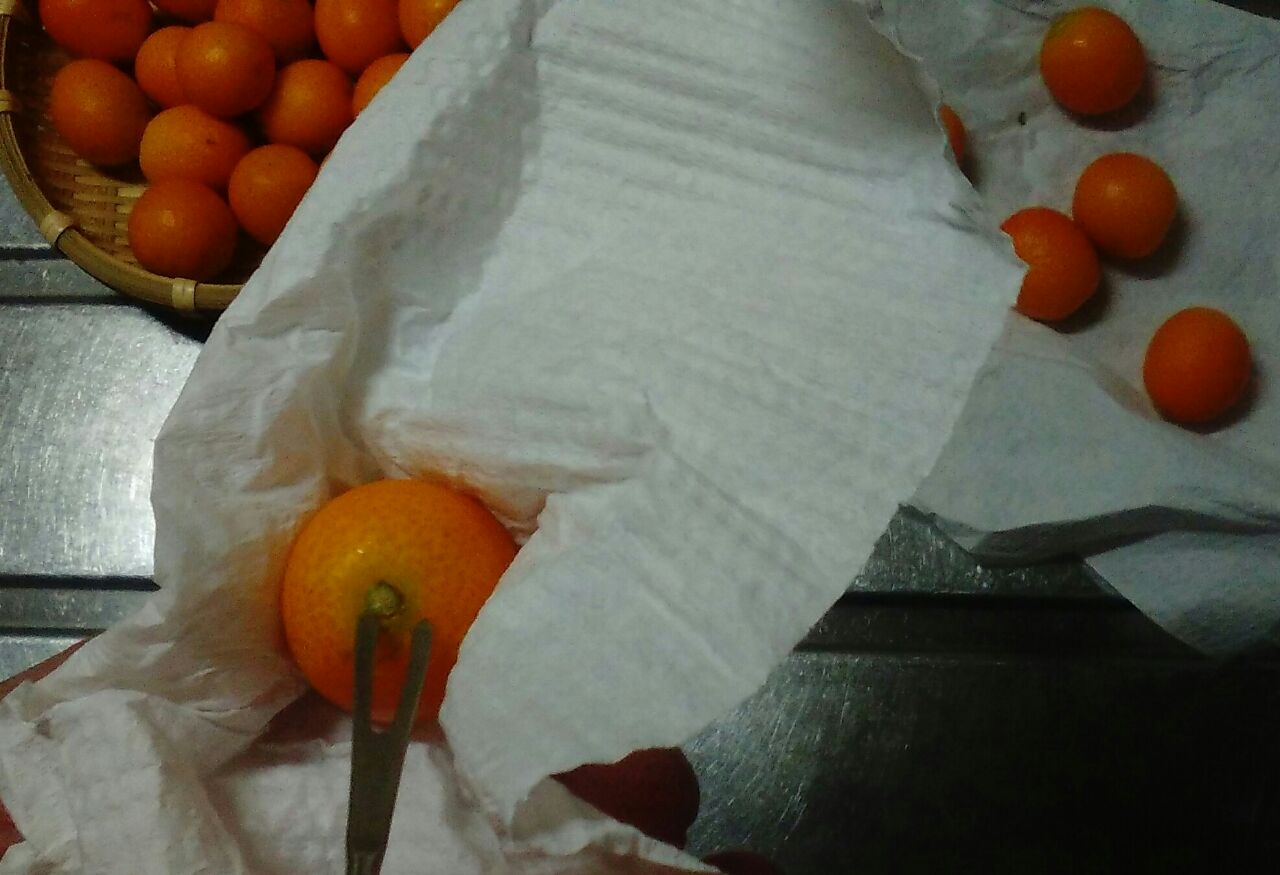 金柑の実を取りだしましょう。