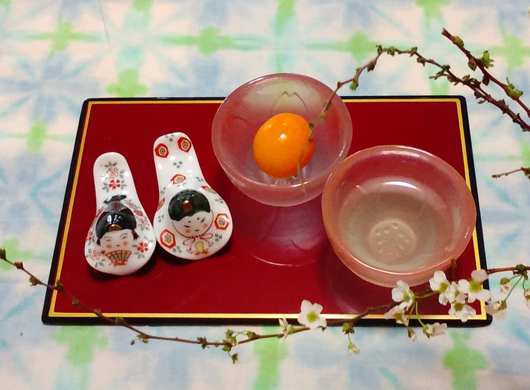 肝心のお雛様は天袋から出すのが面倒なので、箸置きですませちゃうのでした~。