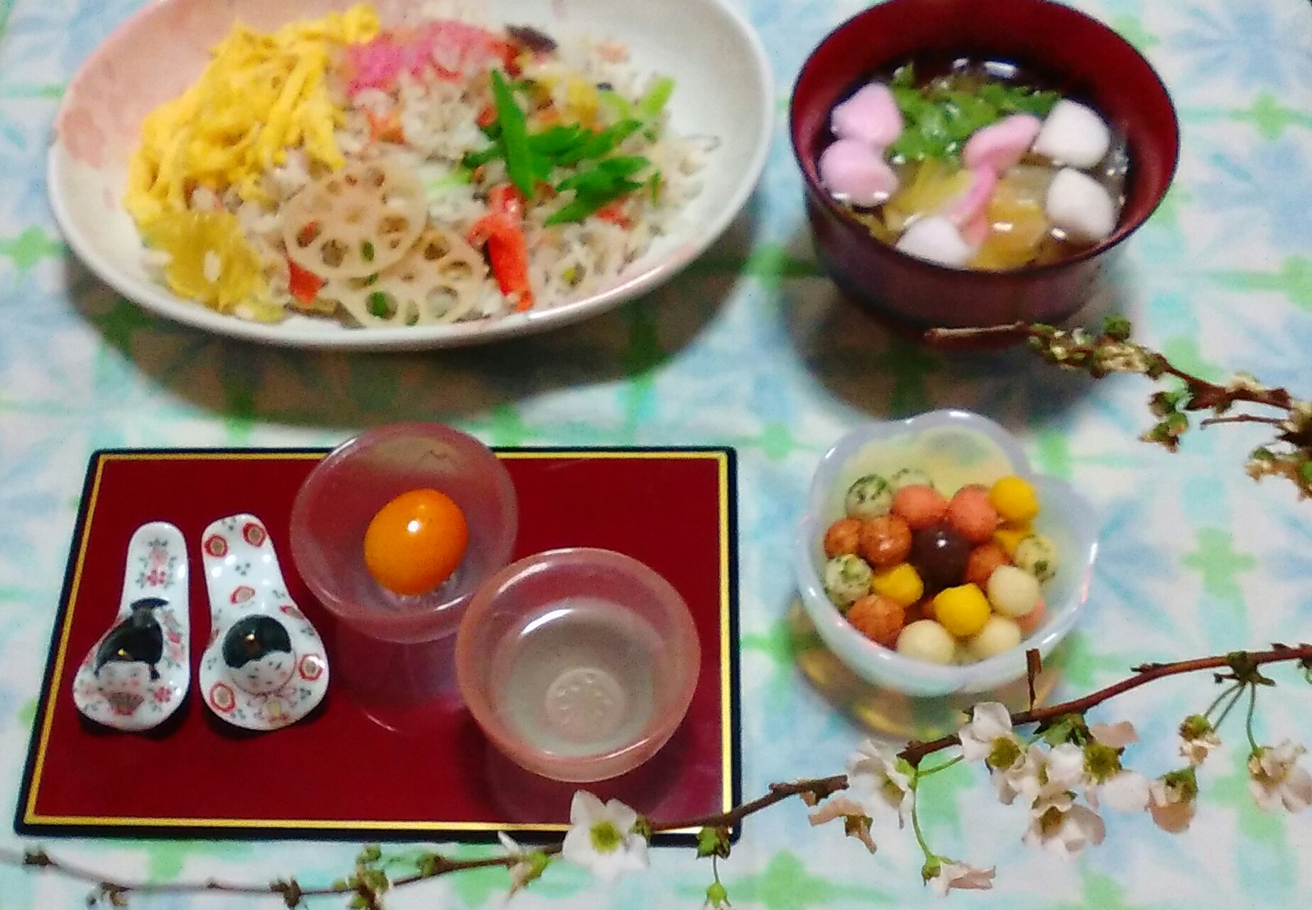 雛祭りぽく、お花もあしらってみましたよ~(*´∀`)