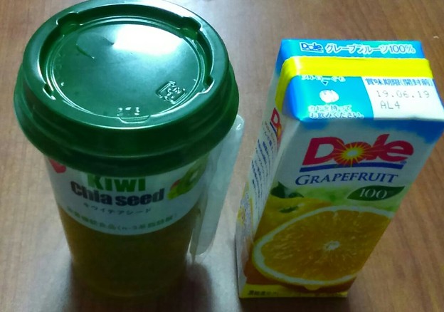 キウイとチアシード以外にもリンゴ、ブドウ、レモン、パインなんかの汁が入ってるし、そこまで不味くはないけど、ストレートで240ml飲み干すのはツラい。。。