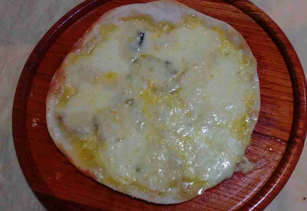 『フロマージュ天満橋』で買ったモッツアレラとゴルゴンゾーラ・ドルチェを使ったクワトロフォルマジオ(4種のチーズピザ)。