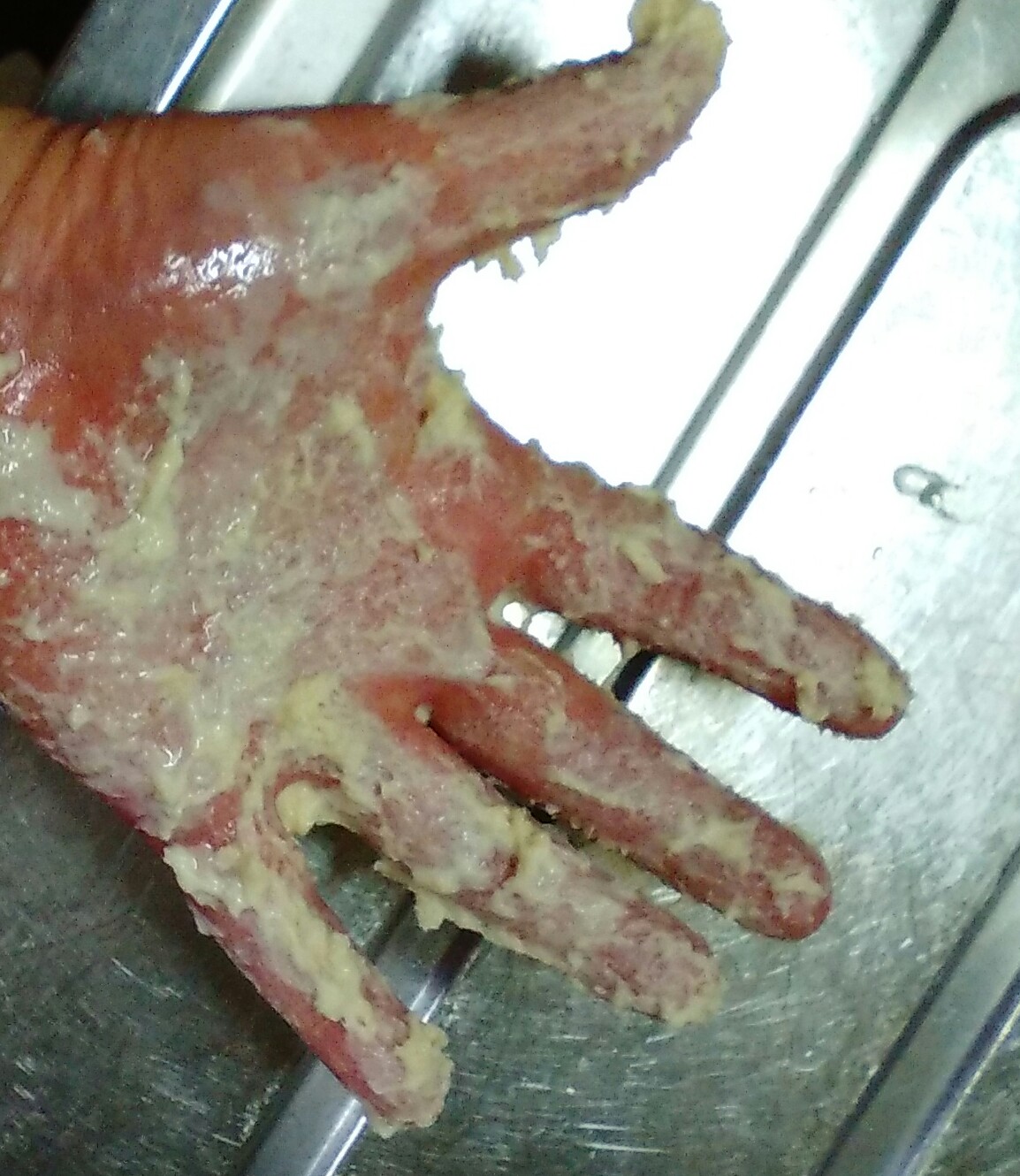 よく混ぜればまとまってくるかと思っていましたが、よけいにべとべとしてきて手におえなくなってきました。