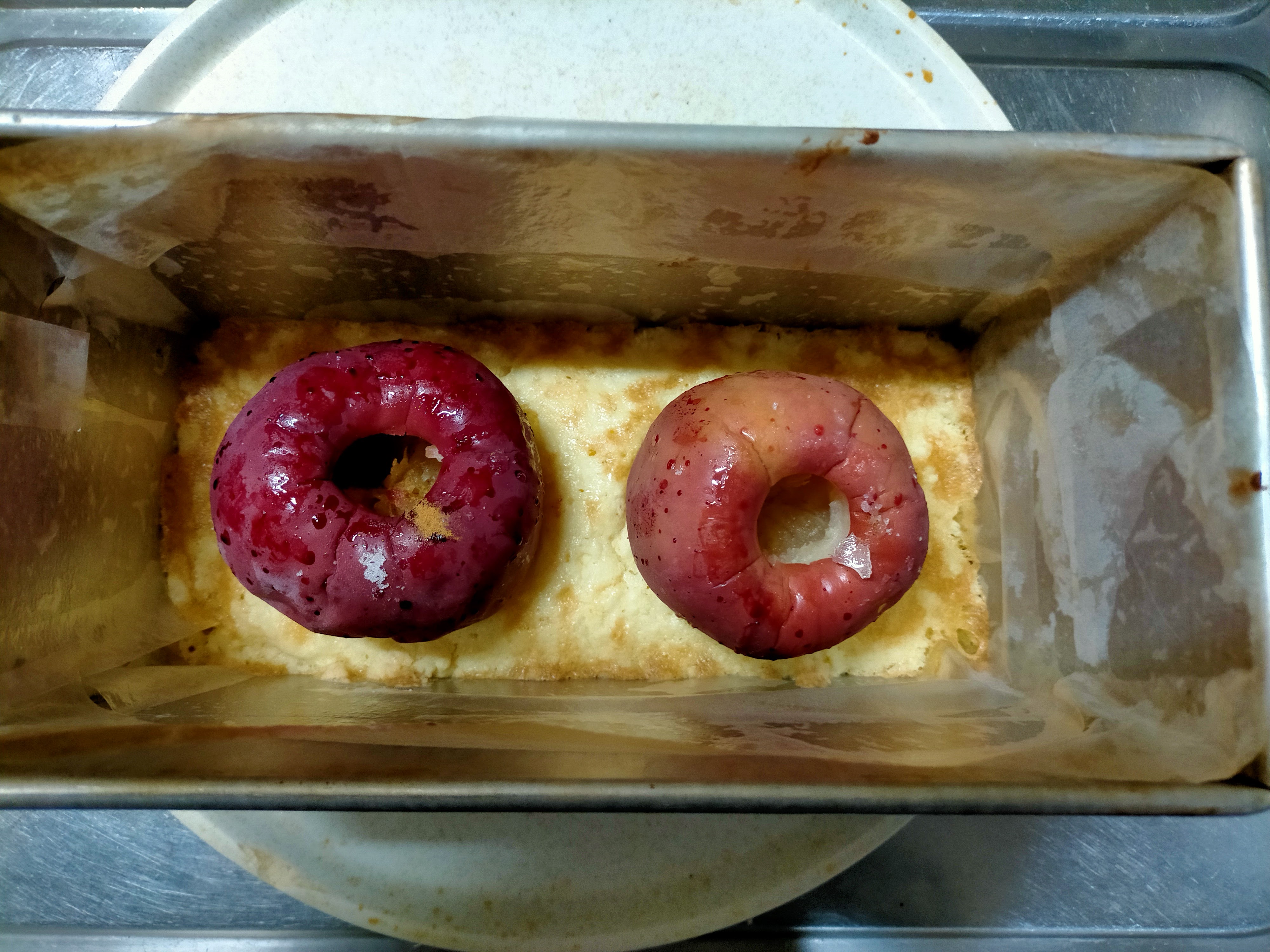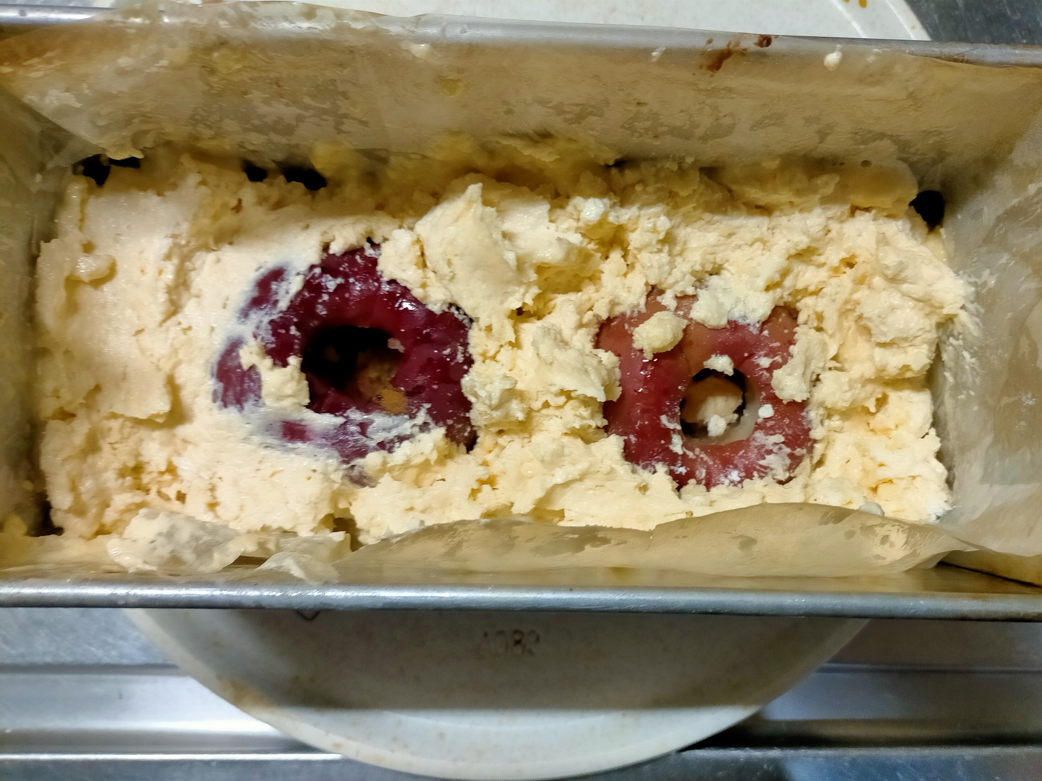 パウンドケーキの中にリンゴを丸ごと埋め込んで、焼きリンゴとケーキを同時に喰らおうぜ~!