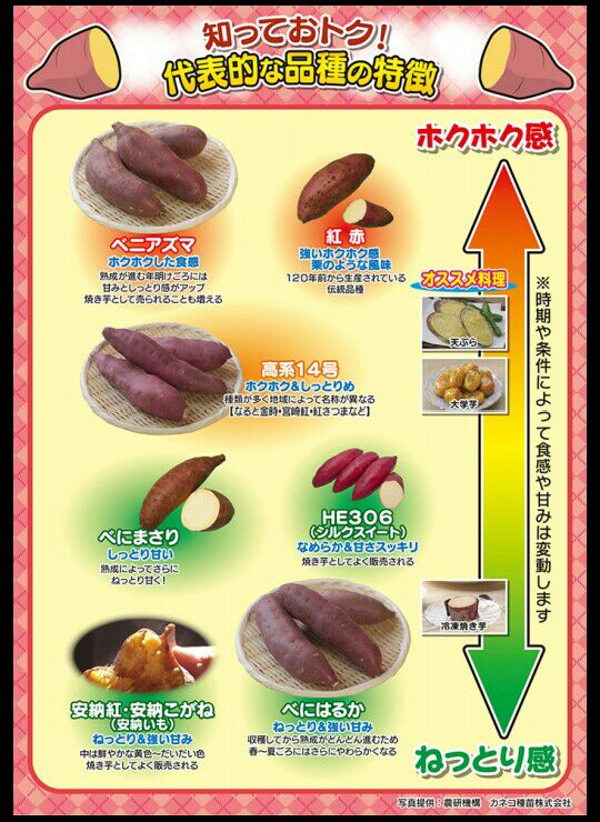 これ↓は代表的なサツマイモの品種の特徴図。