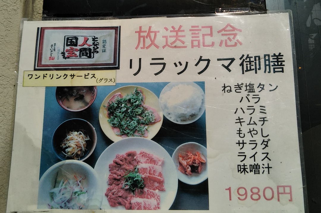 関西テレビ『よ〜いドン』の中の「隣の人間国宝」っていうコーナーで『隣の人間国宝認定証を』もらってるみたいで、放送記念の「リラックマ御膳」もあるみたい。