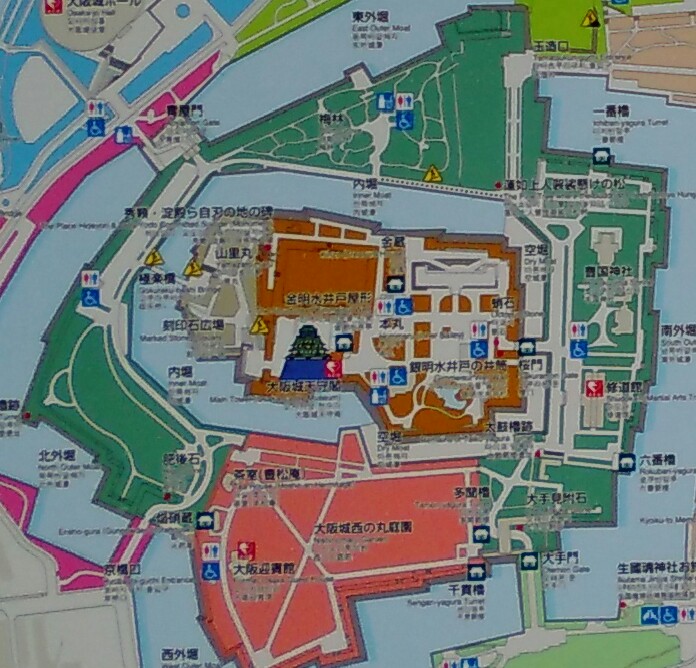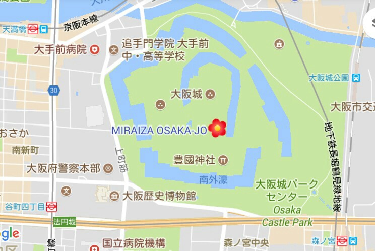 大阪城公園大手門近くの地図。