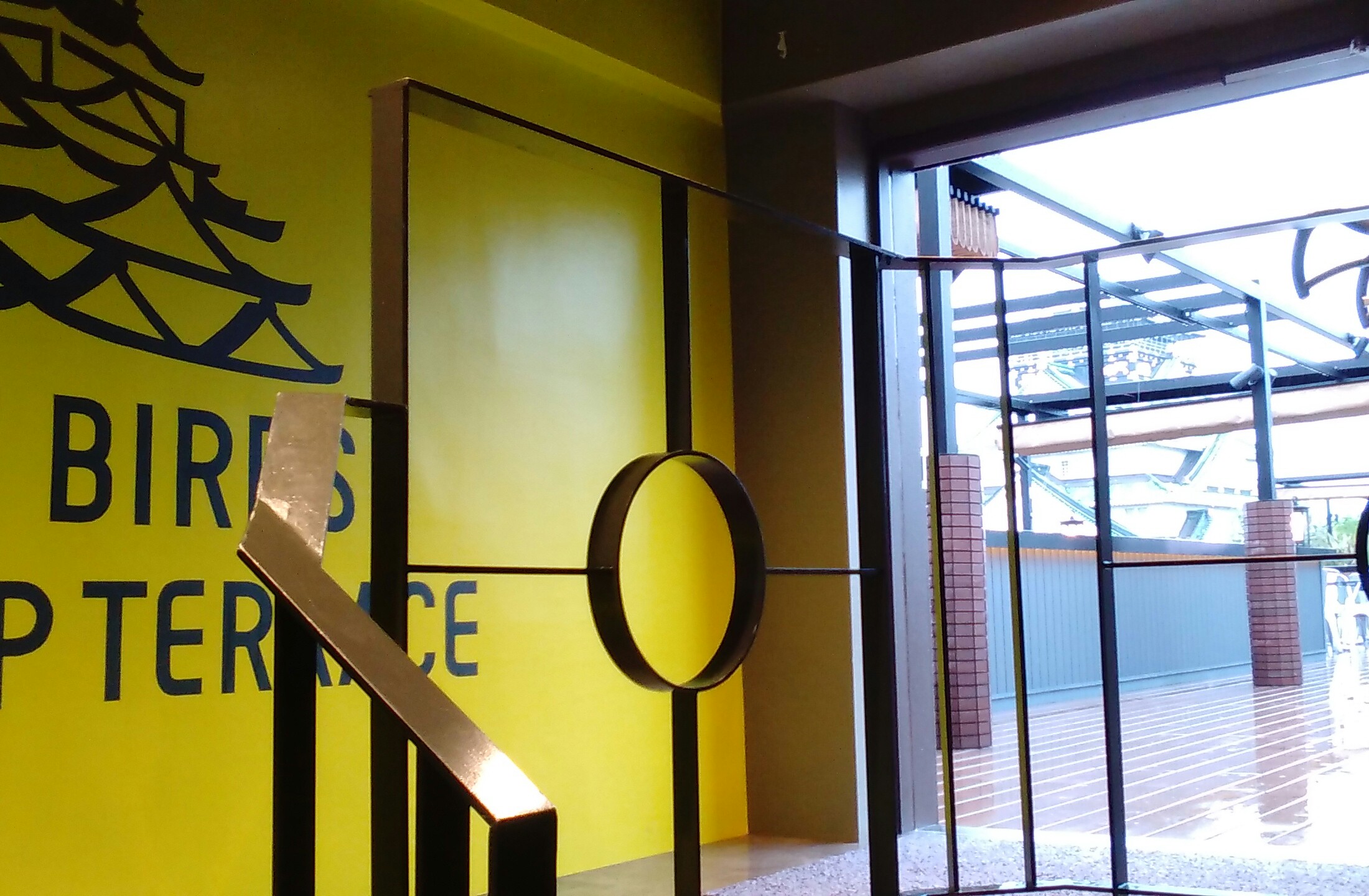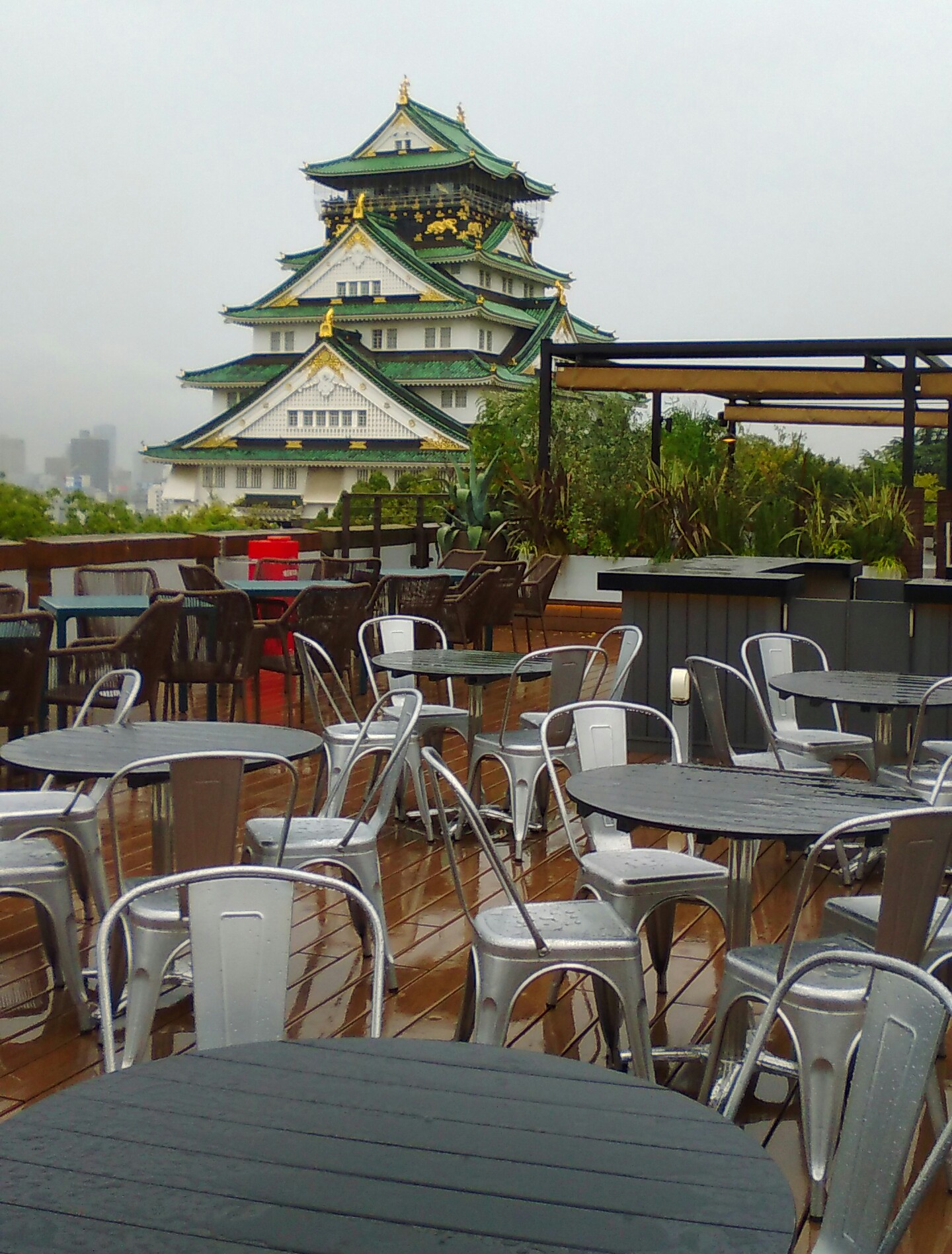 テラスの向こうに天守閣が。