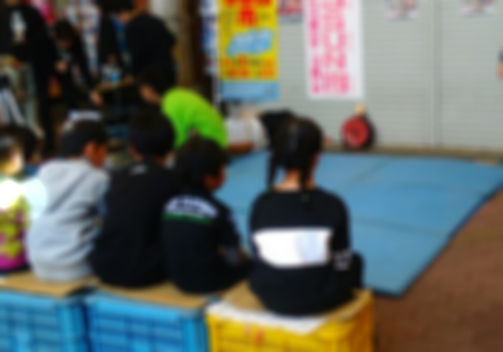11時が近づくと観覧席に子どもが陣取りはじめました。