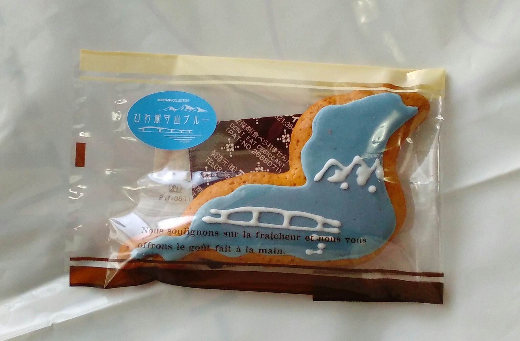 サブレはびわ湖の形を型どっており、バタフライピーの青で塗られた琵琶湖に、山と琵琶湖大橋が描かれています。