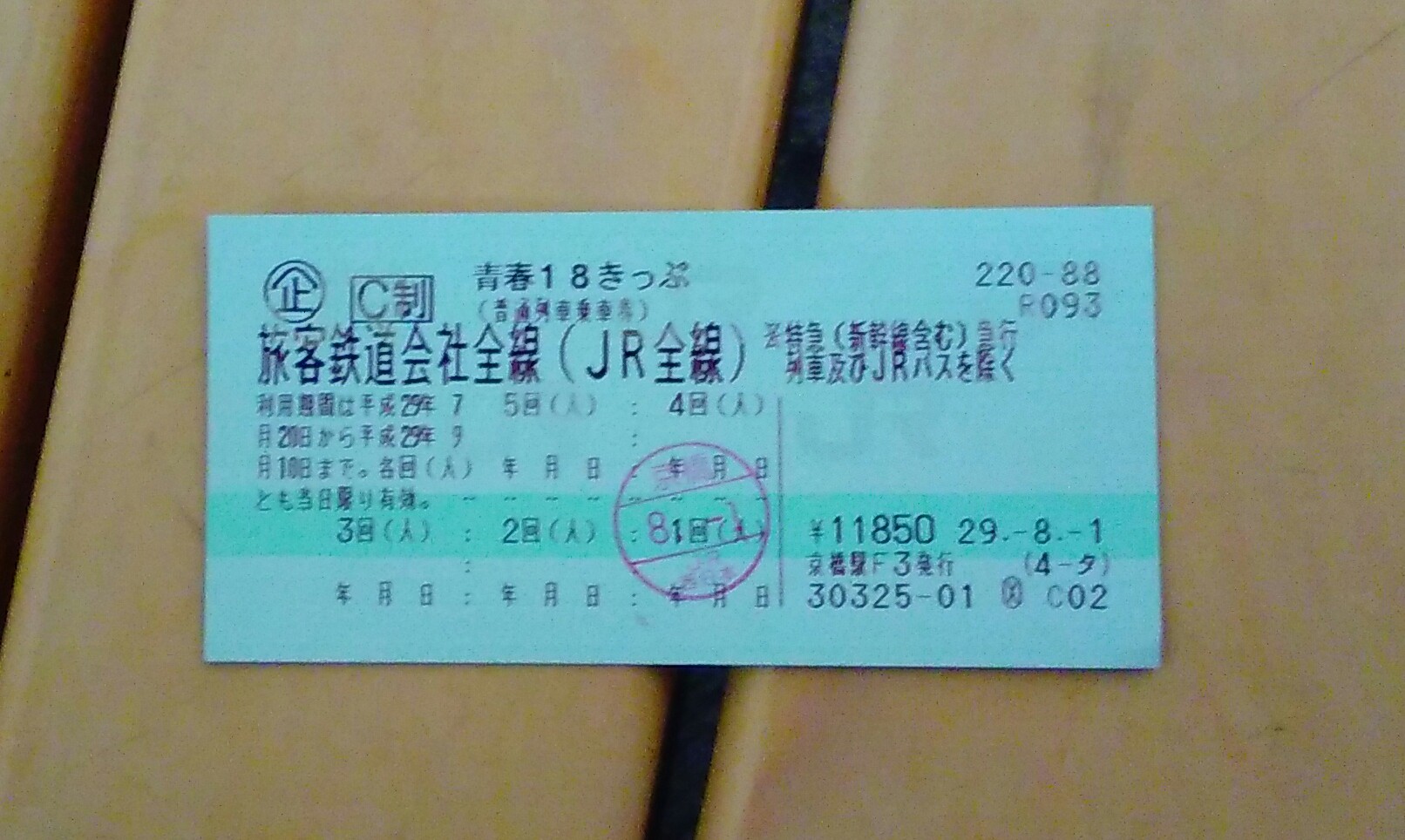 青春18切符は、JRの普通、快速が1日乗り放題の切符で5枚綴りで11850円。