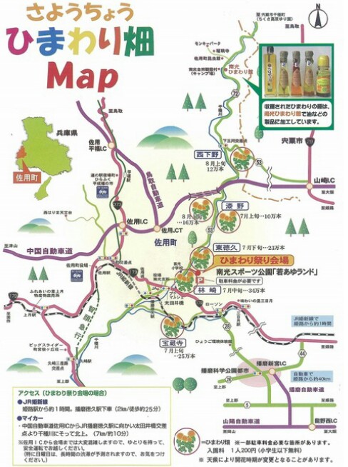 私の訪れた時は、佐用町のひまわりの最終で、西下野地区が見頃でした。