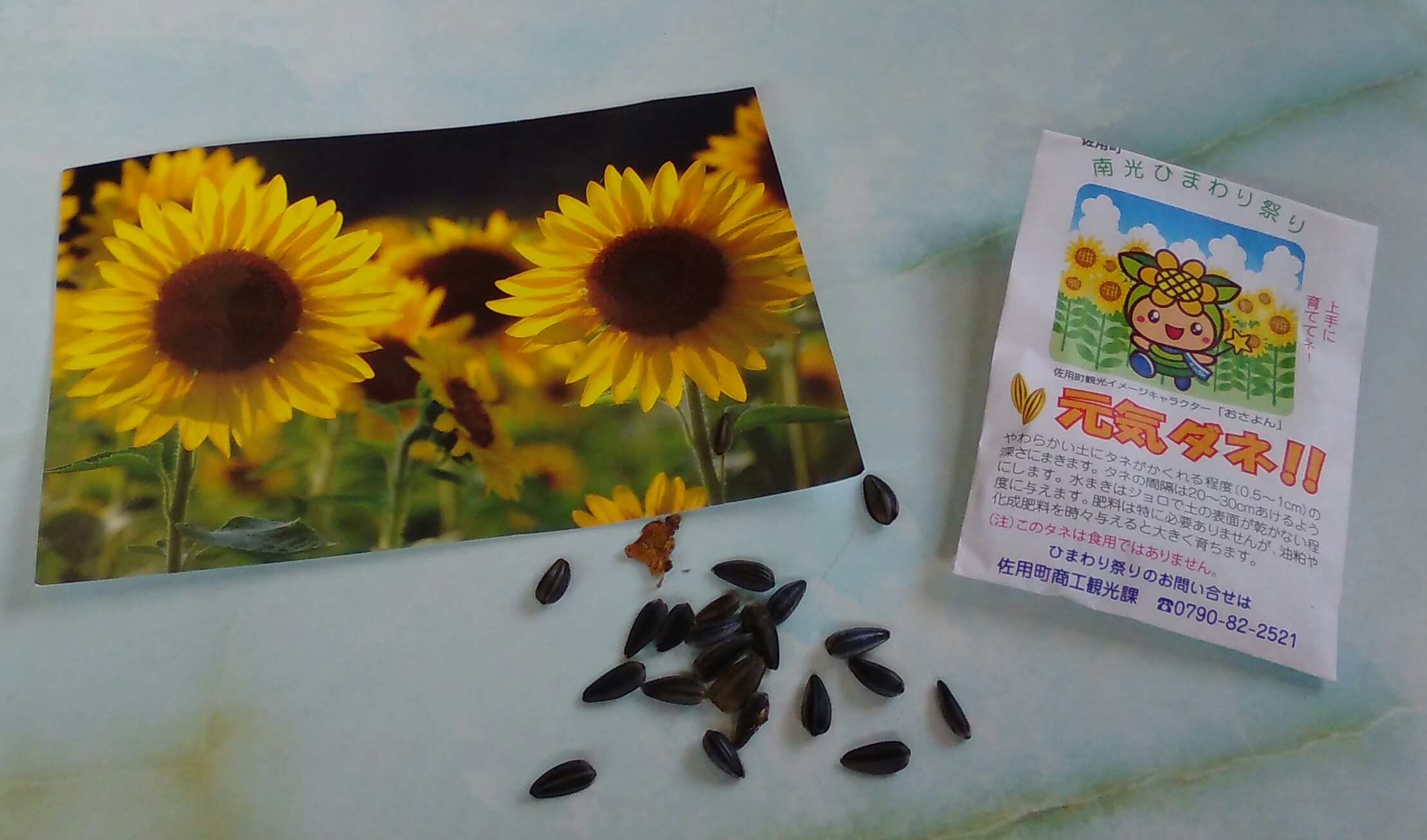 入園料200円を払うと、ひまわりの種と絵葉書をくれました。