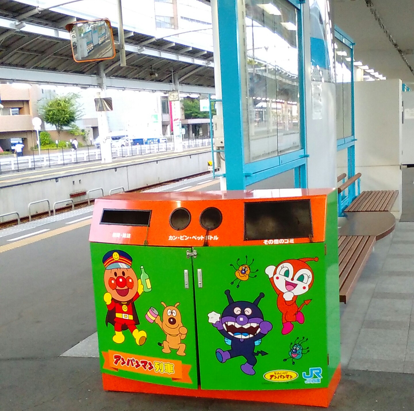高松駅ホームのゴミ箱もアンパンマン。