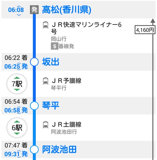 今日中に足摺岬へ行くには、6時過ぎに高松を出る電車に乗らなければなりません。
