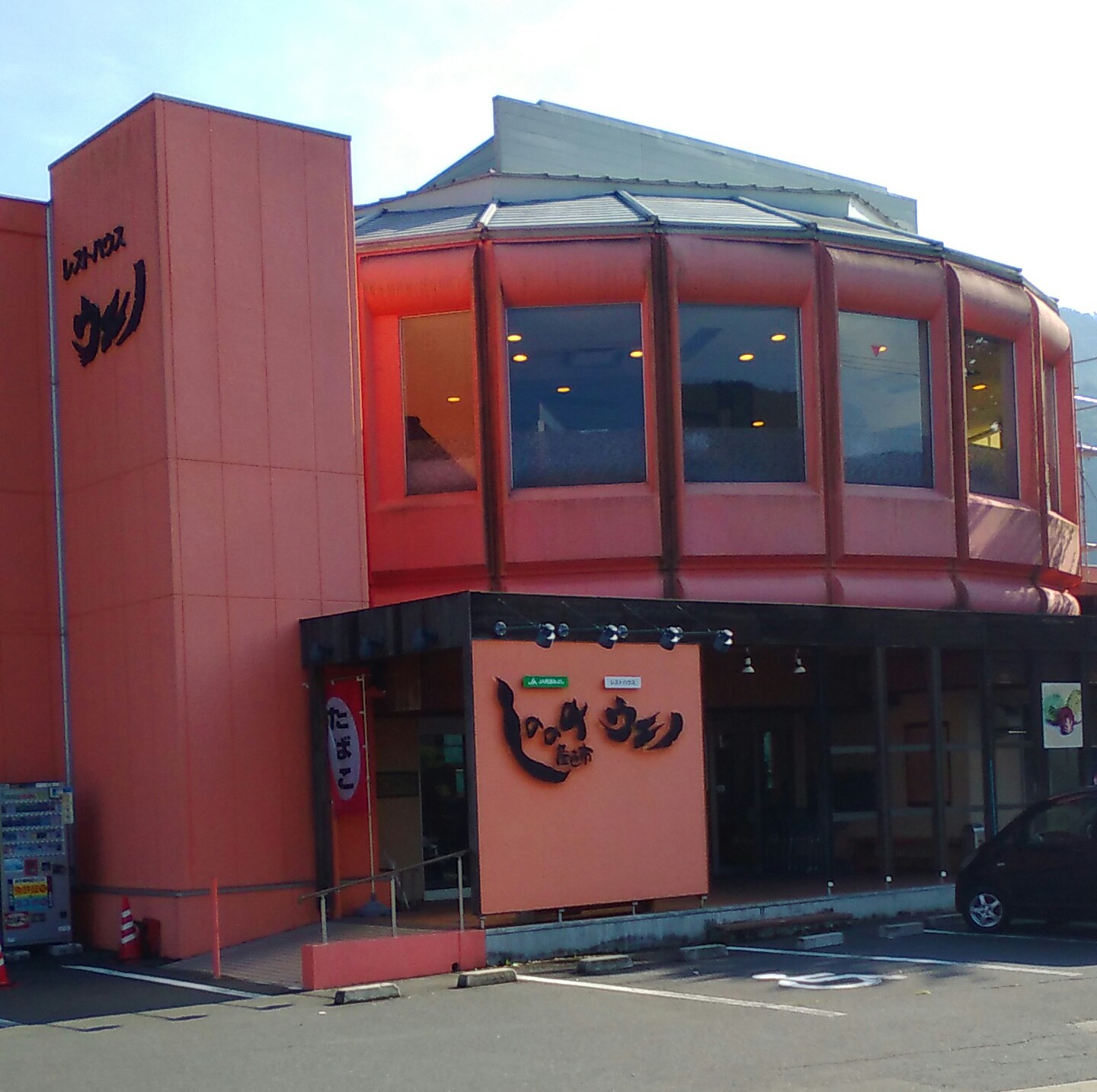 「レストハウスウエノ」は1階が産直の野菜などを販売しており、2階がレストランです。