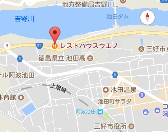 マップを開くと、歩いて10分足らずのところに吉野川が。その横にレストハウスも。