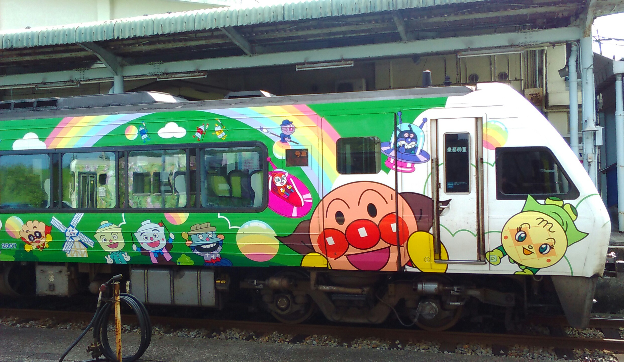 最初のおもしろ列車は、停車中にみかけたJR四国の『アンパンマン列車』。