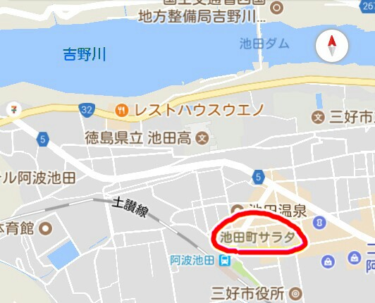 阿波池田駅で長時間停車するので、途中下車して吉野川を見に行った時に見たのが、阿波池田駅前商店街の辺りの地名「池田町サラダ」。