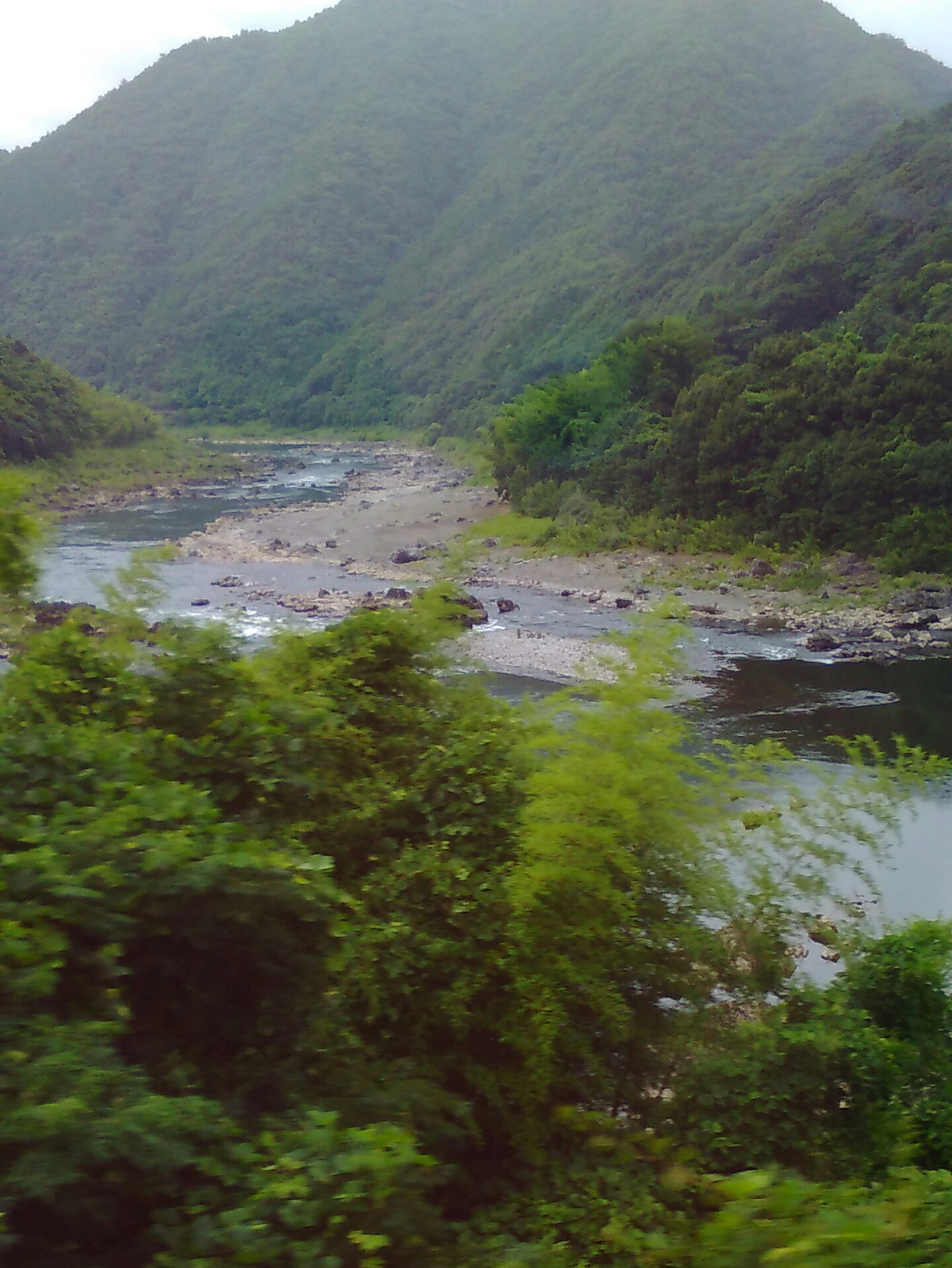カッパがうようよ出そうな四万十川の清流沿いを走る列車でした。
