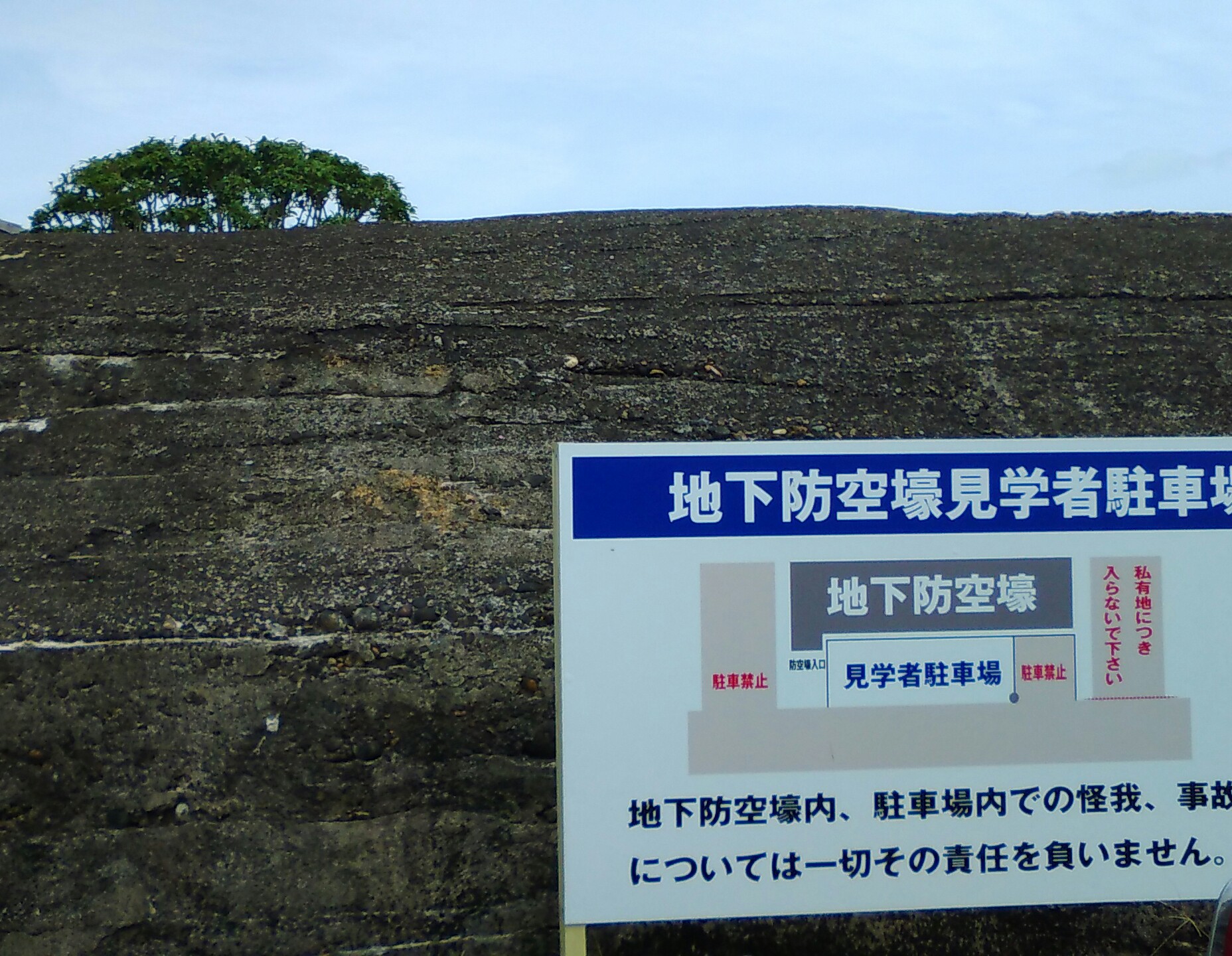 駐車場の背後にあるのが防空壕で、コンクリートでできています。