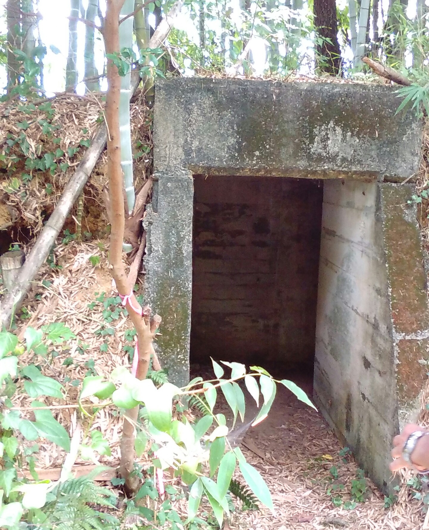 その次に案内してもらったのは、山道のようなところの途中にある防空壕。