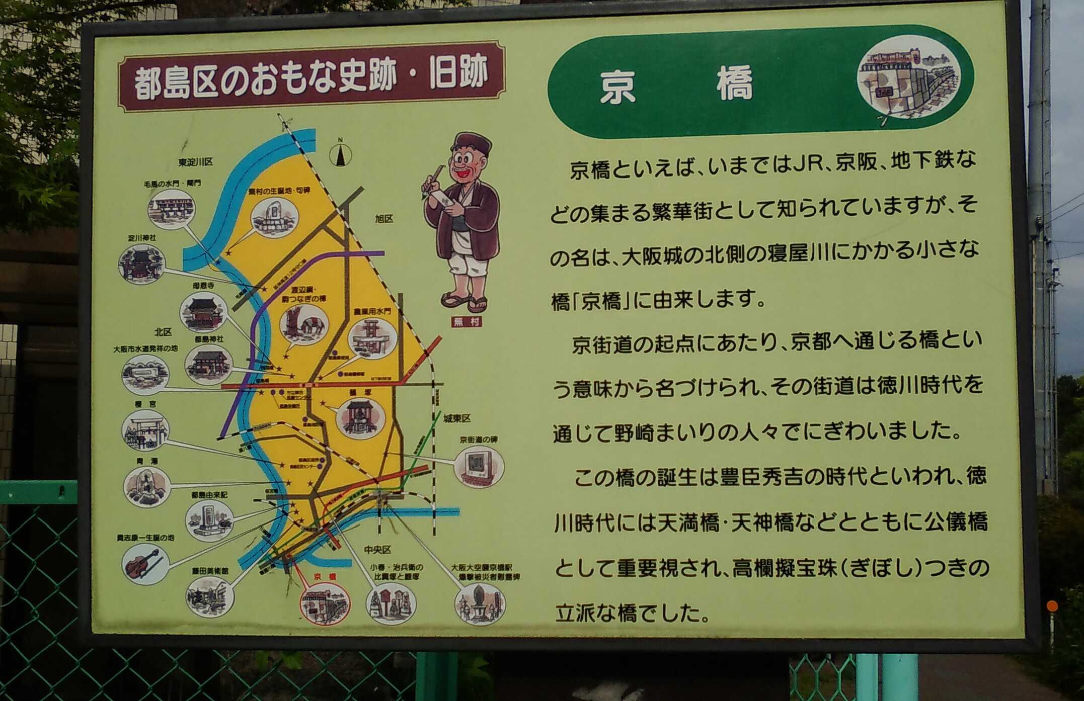 大阪城の北西の角から土佐堀通りにかけての寝屋川にかかる橋の名前です。